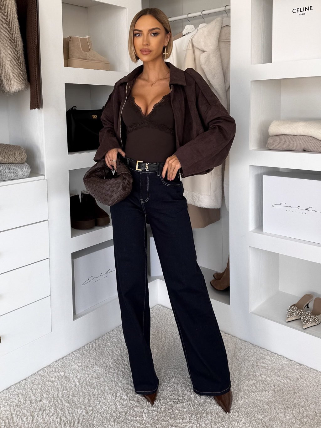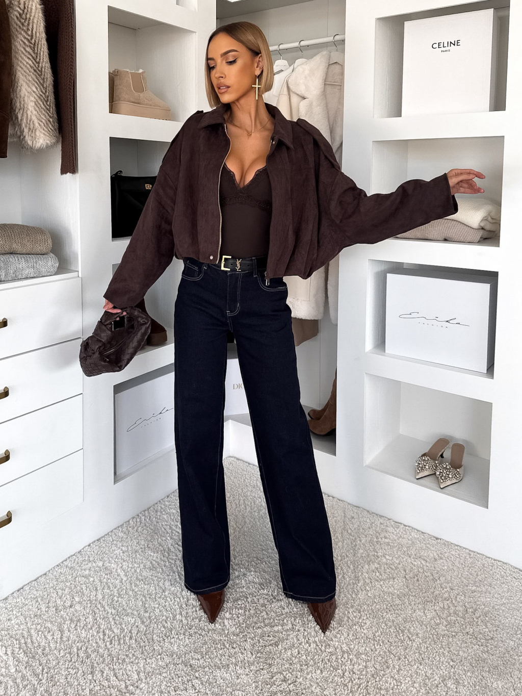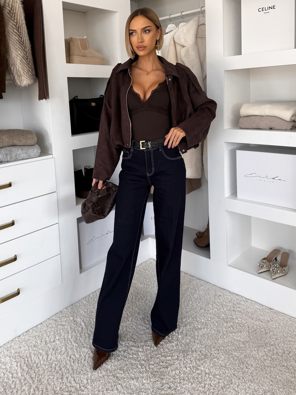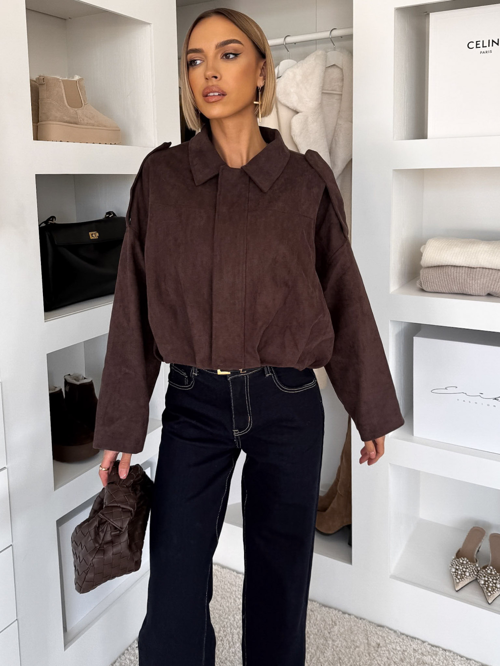 Tmavě hnědá semišová moderní bunda KUSTIRA