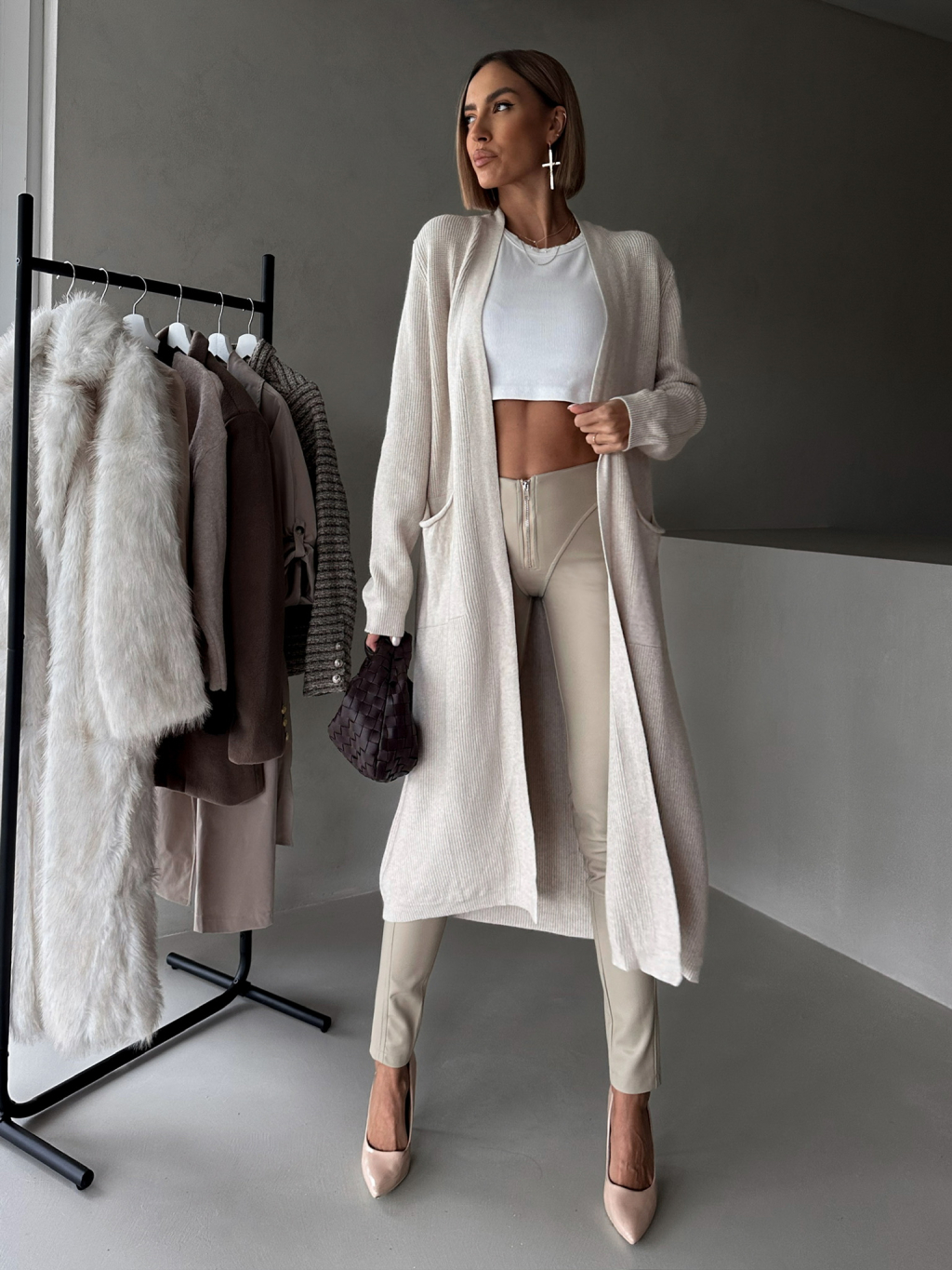 Béžové koženkové kalhoty GRELA