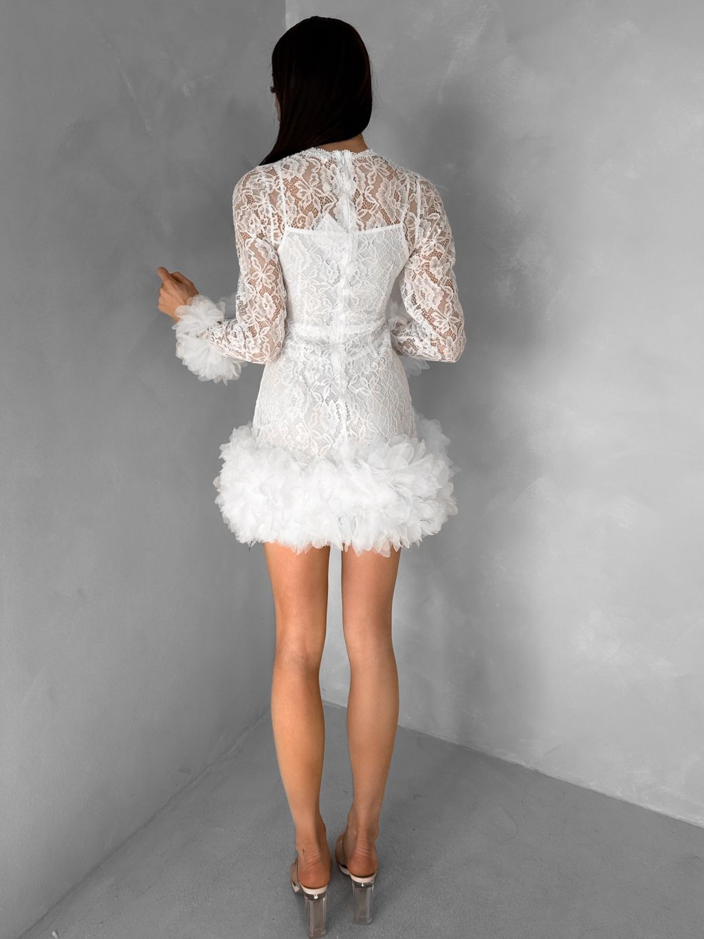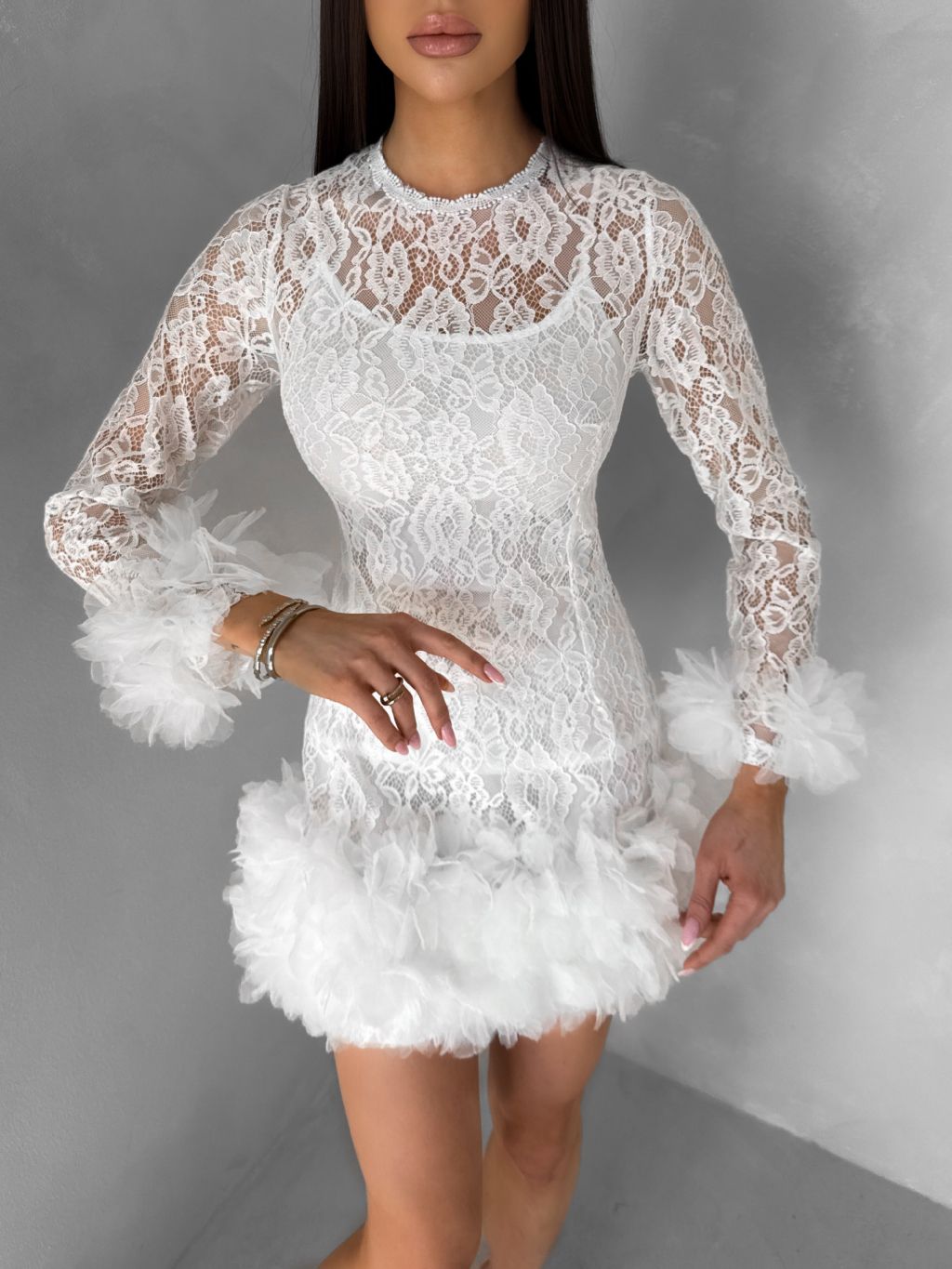 Bílé krajkové koktejlové šaty VINDORA