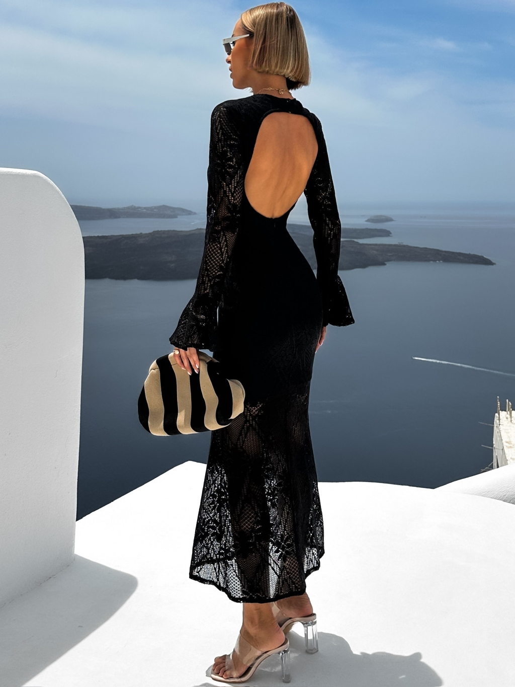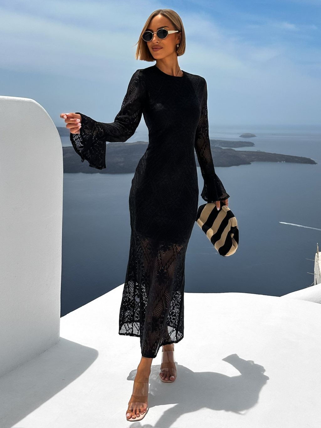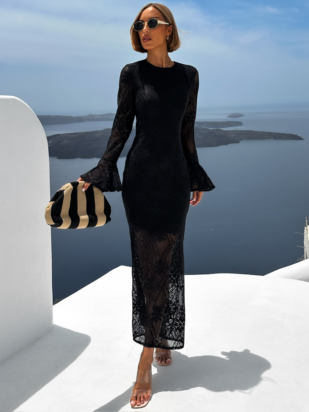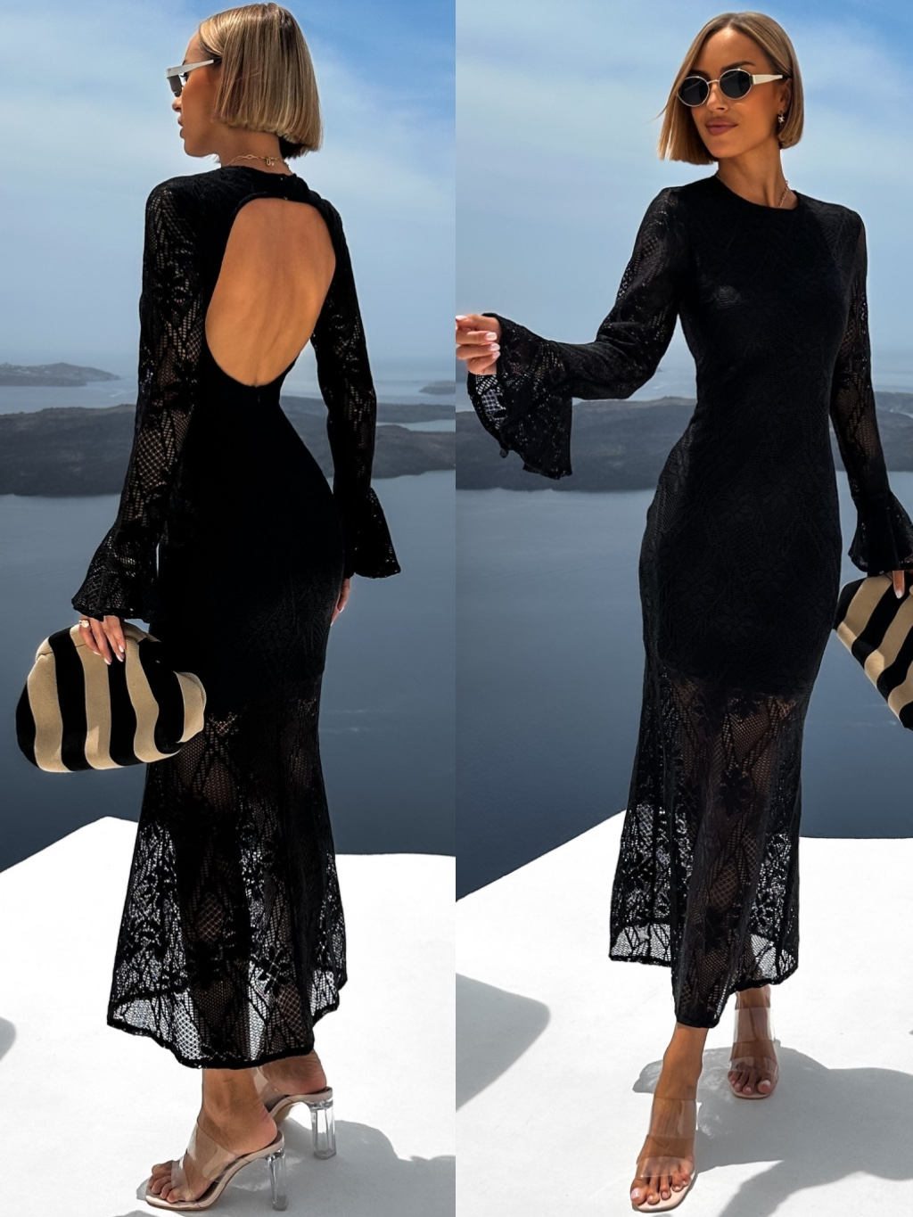 Černé dlouhé průhledné krajkované šaty JUNIOR