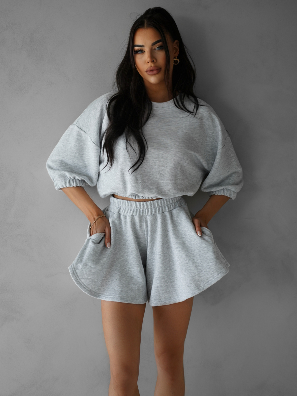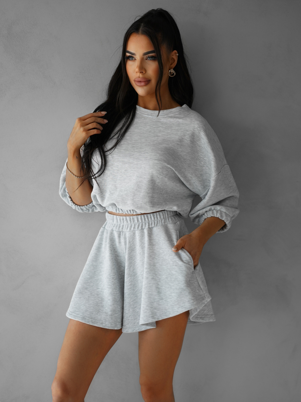 Šedý krátký bavlněný teplákový komplet KARALEN