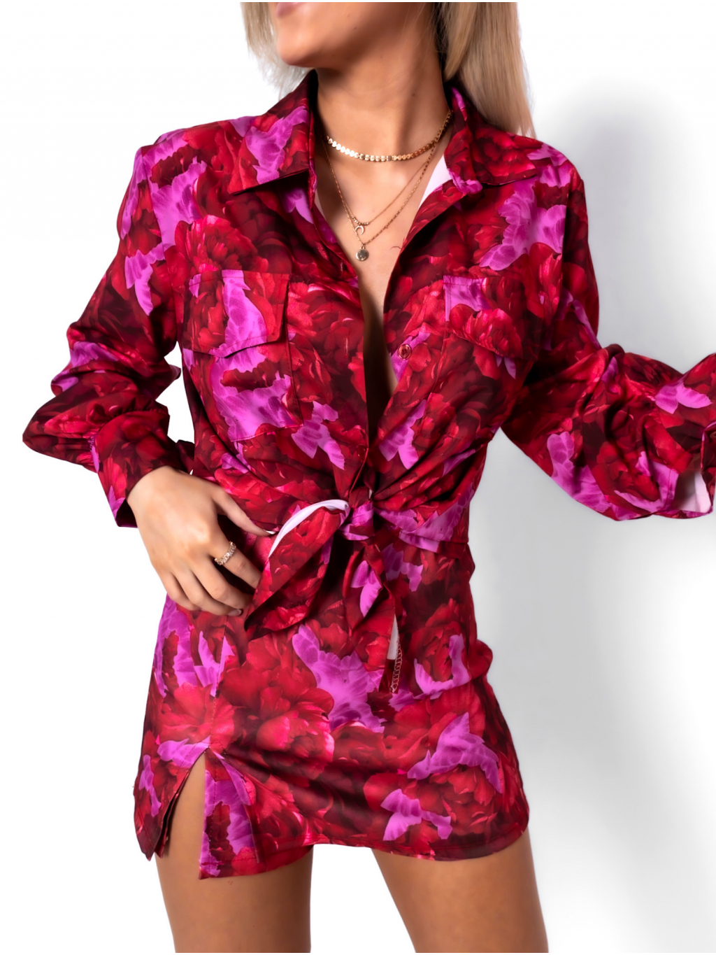 Červený dvoudílný komplet BOWIEE s květinovým vzorem