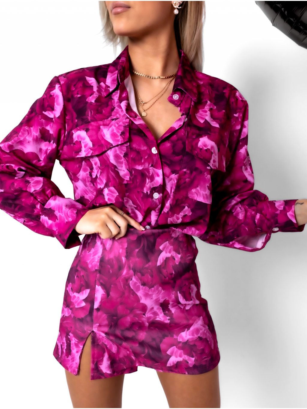 Tmavorůžový dvoudílný komplet BOWIEE s květinovým vzorem