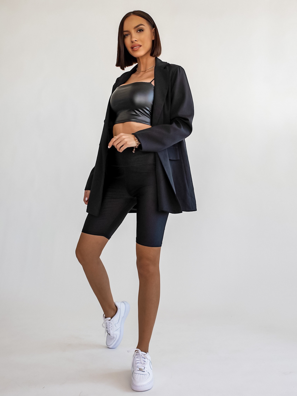 Černé lesklé krátké legíny CANDOR