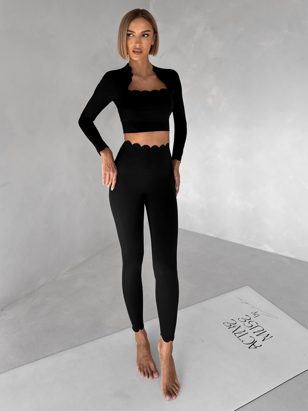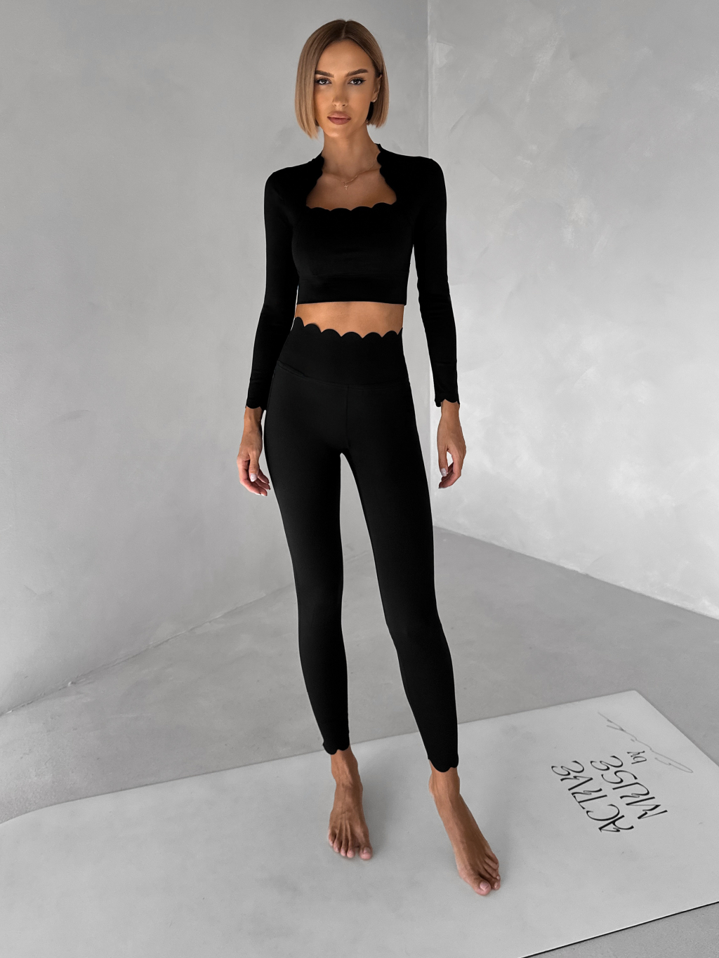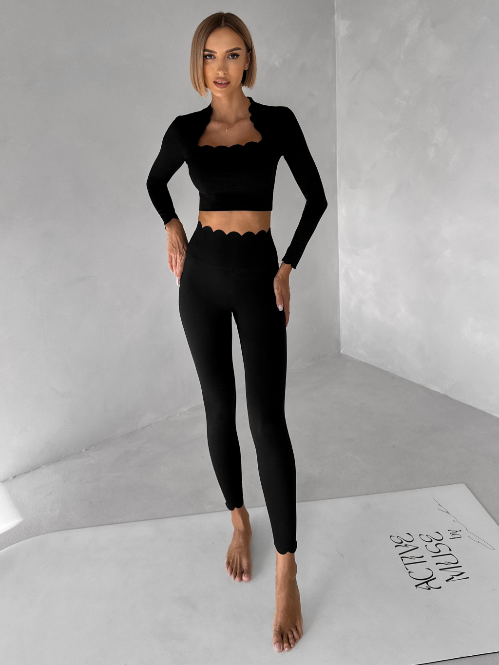 Černé sportovní vlnkované legíny OULUTO