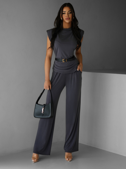 Tmavě béžová elegantní kalhotová souprava RISORA