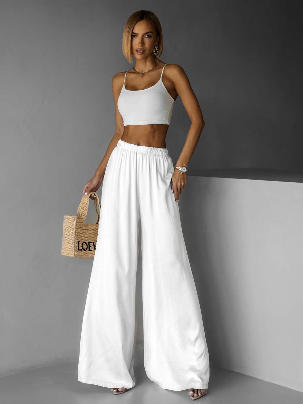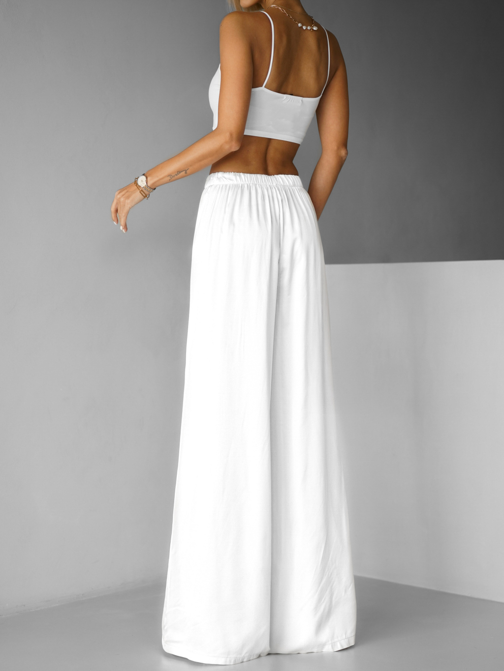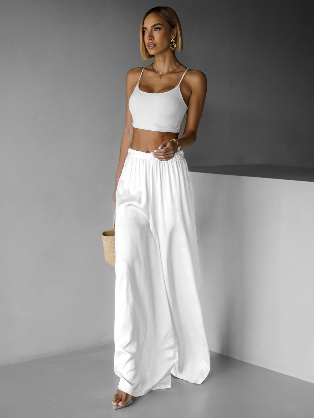 Bílé saténové široké kalhoty SITAKE