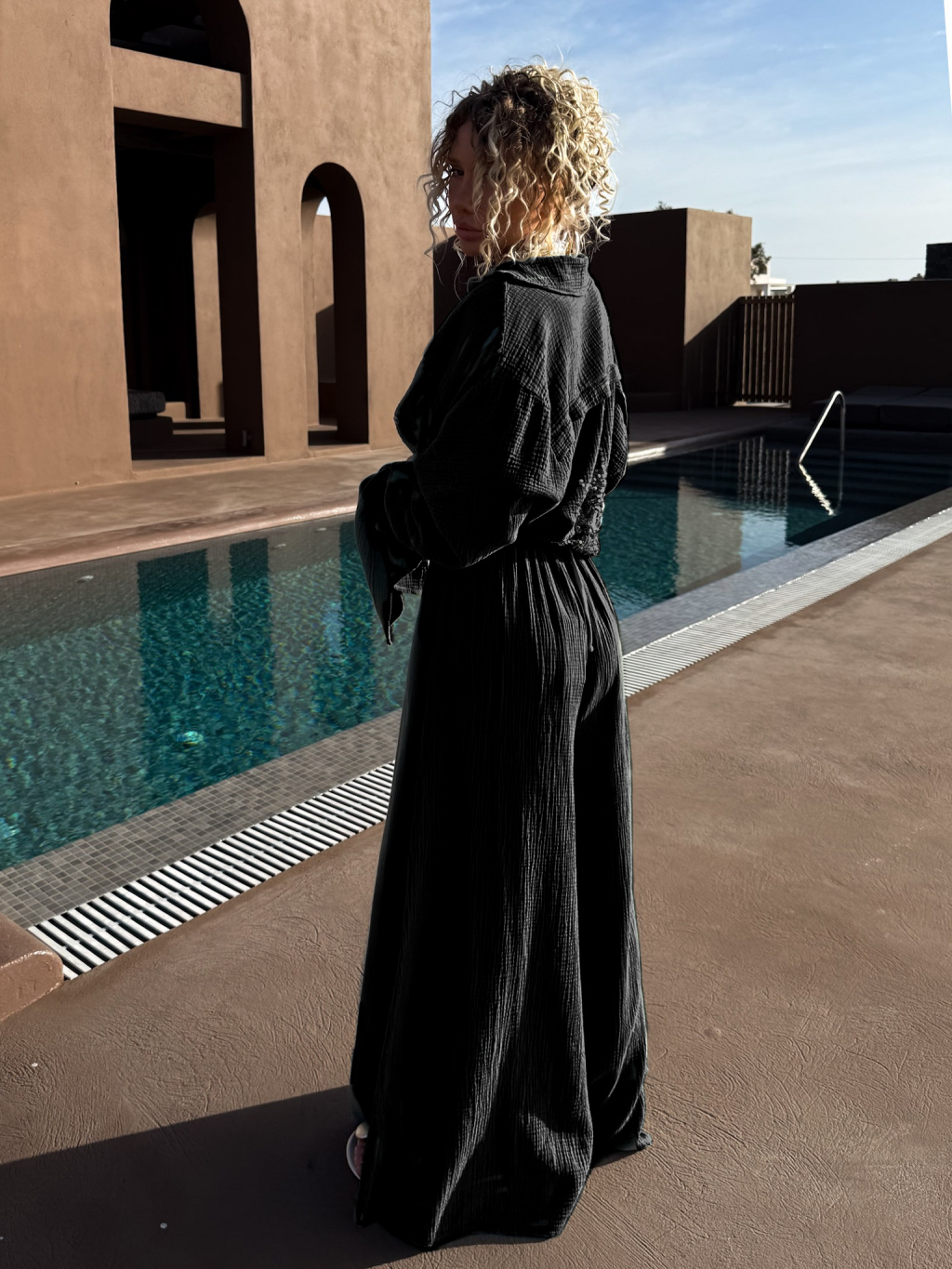 Černé mušelínové extra široké kalhoty JAKAS