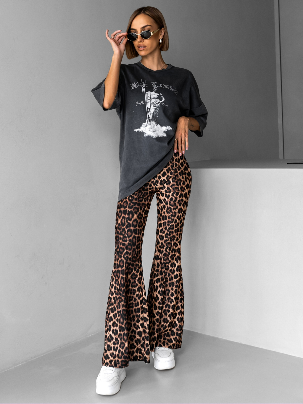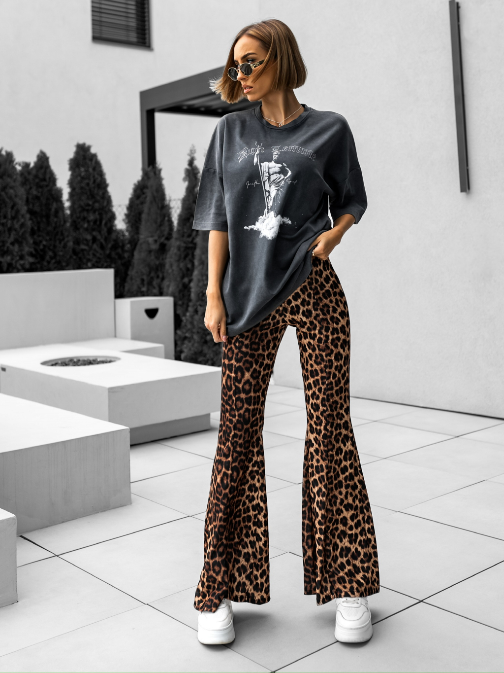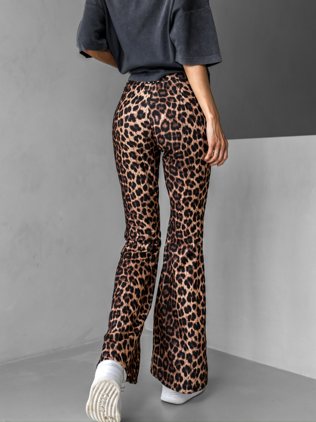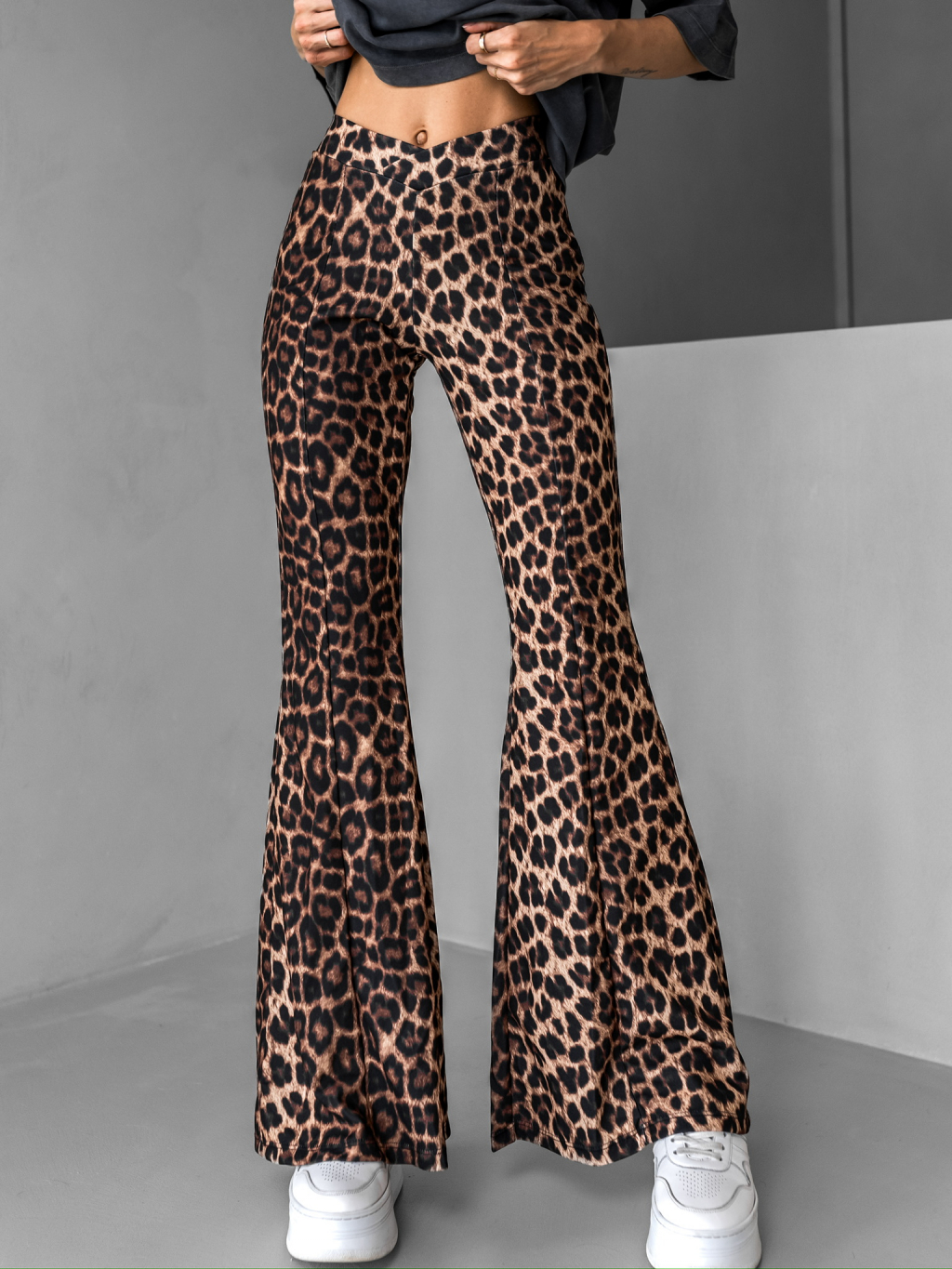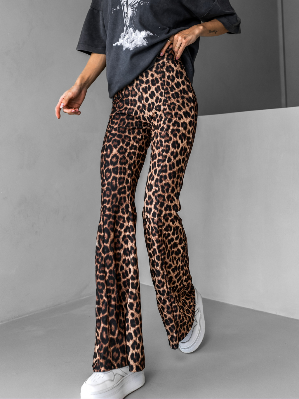 Hnědé leopardí kalhoty do zvonu TUVYA
