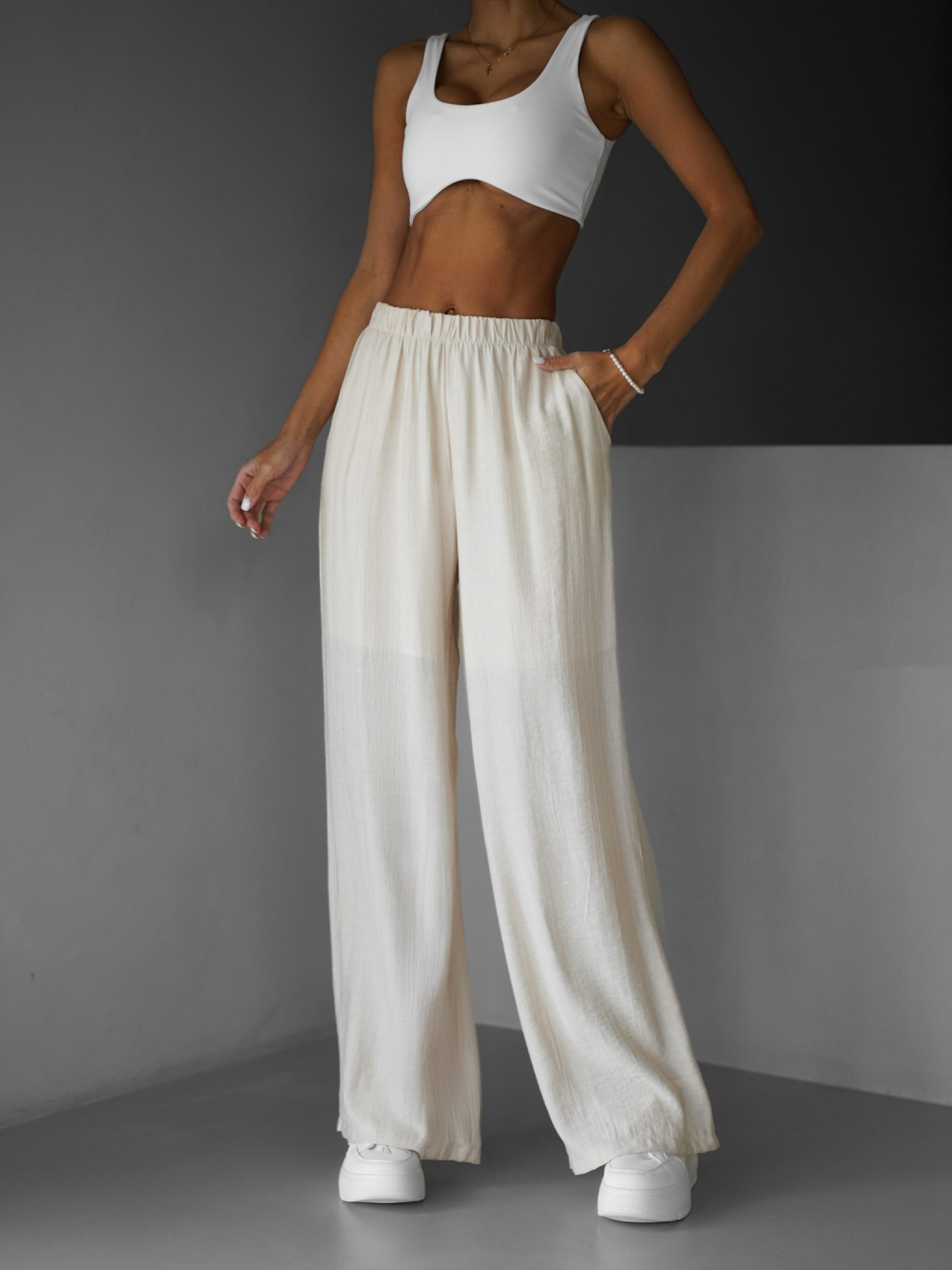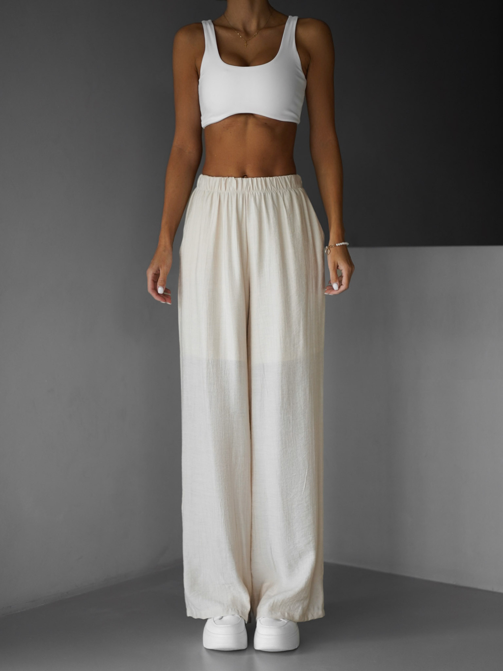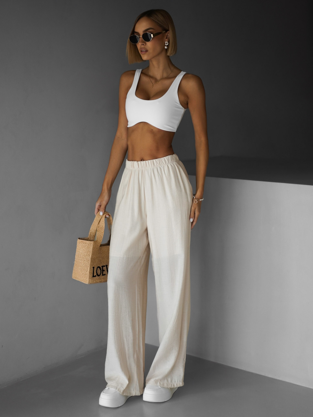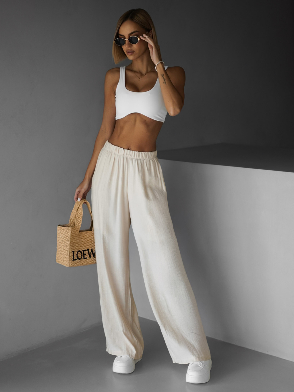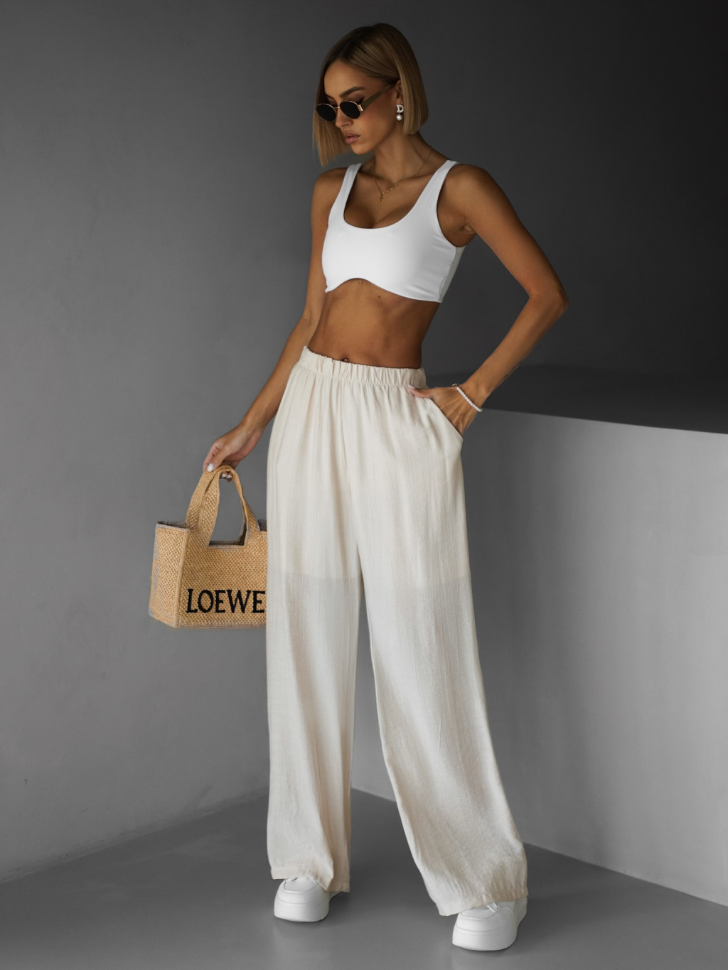 Krémové lehké široké kalhoty MYSARIA na gumu