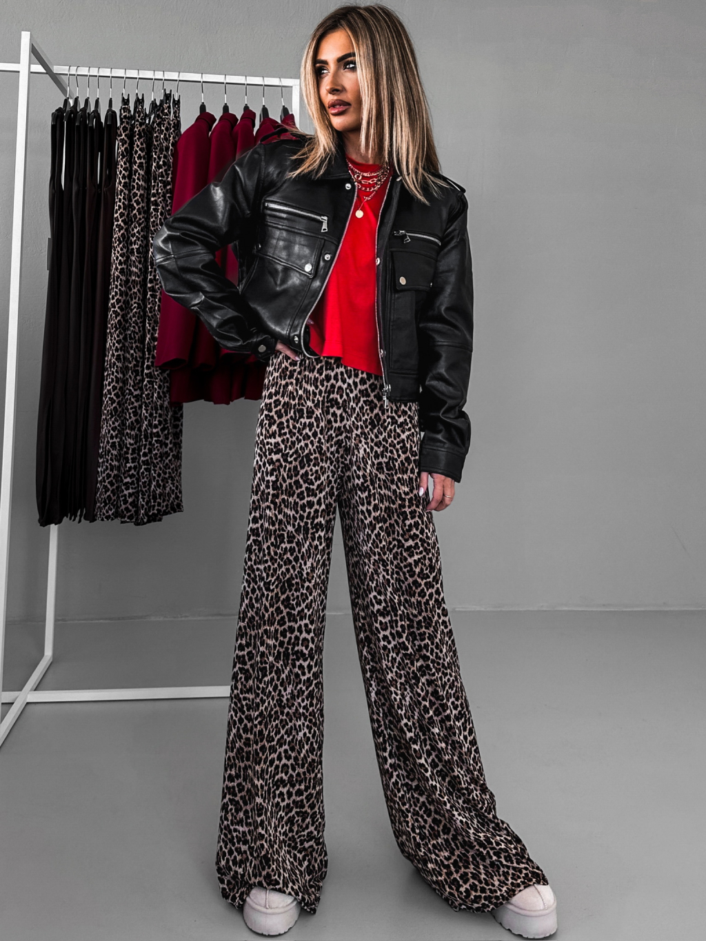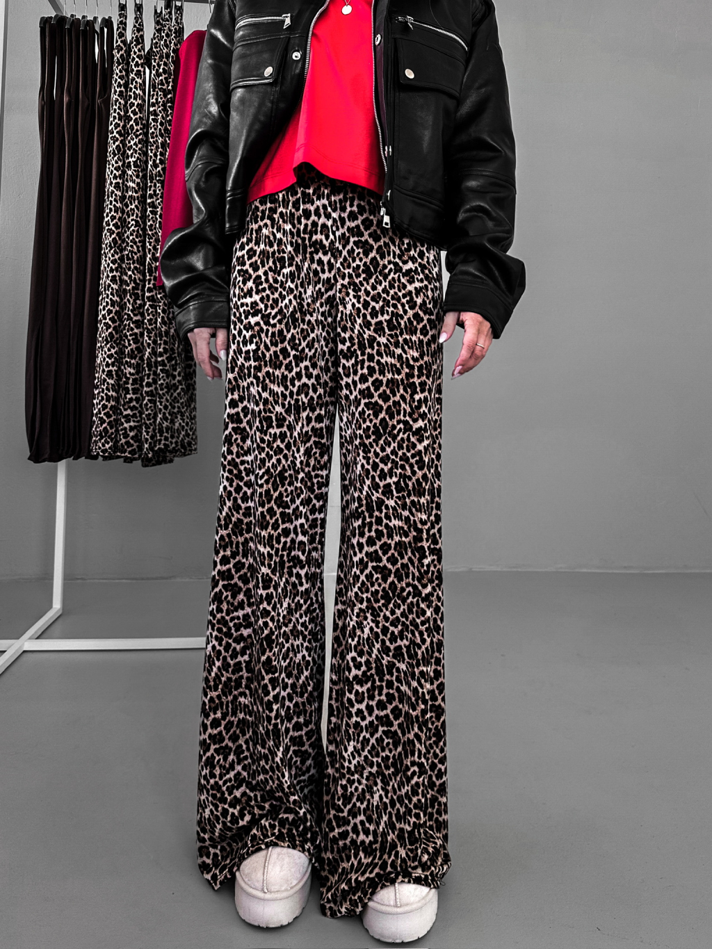 Leopardí široké pohodlné kalhoty ASENTY