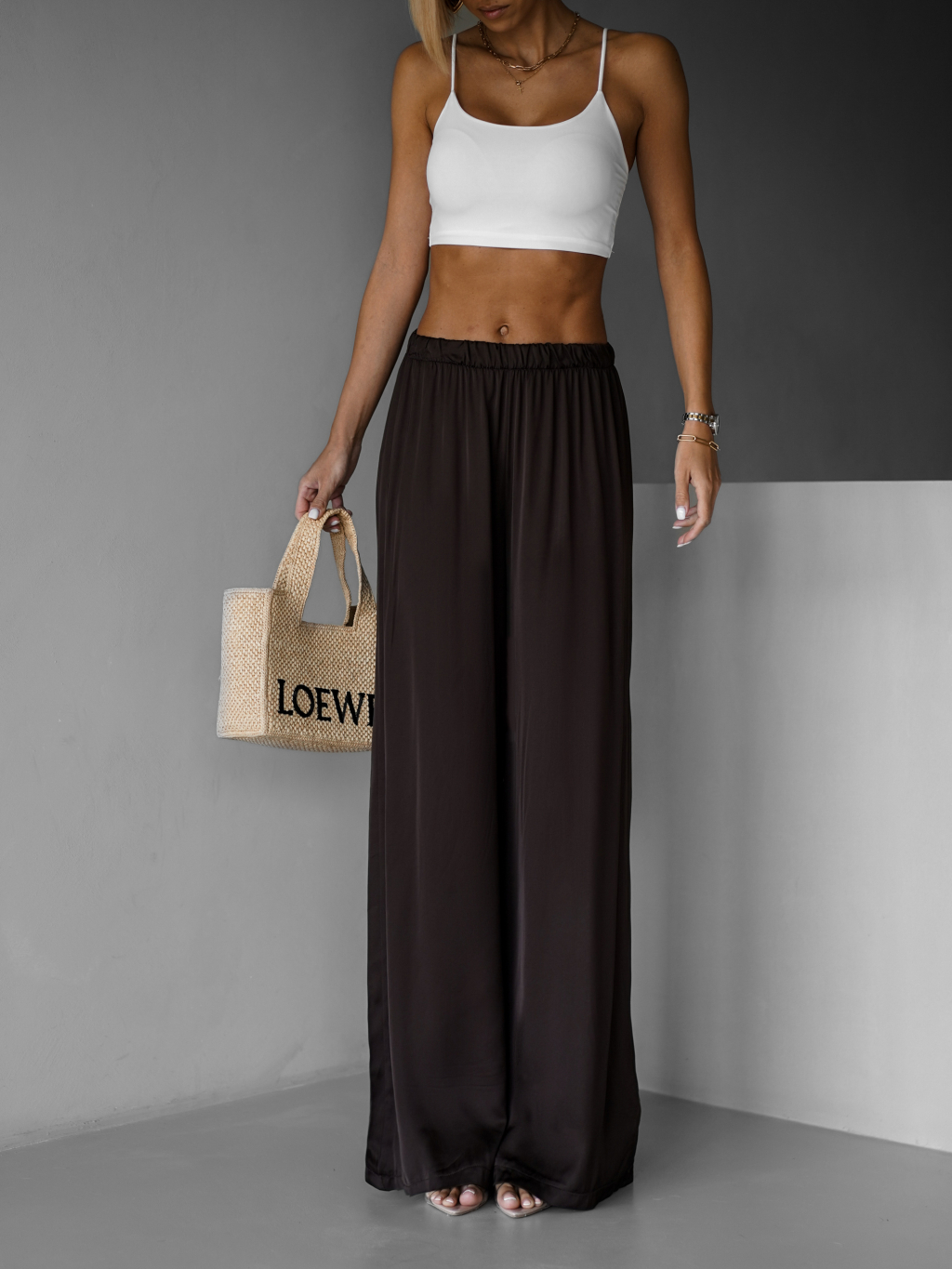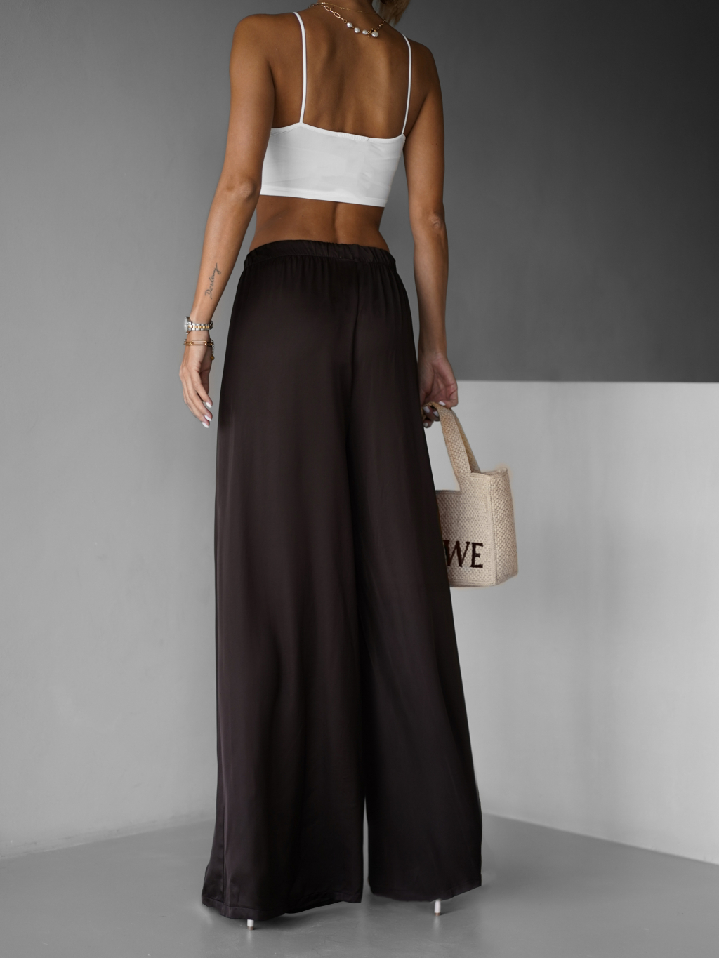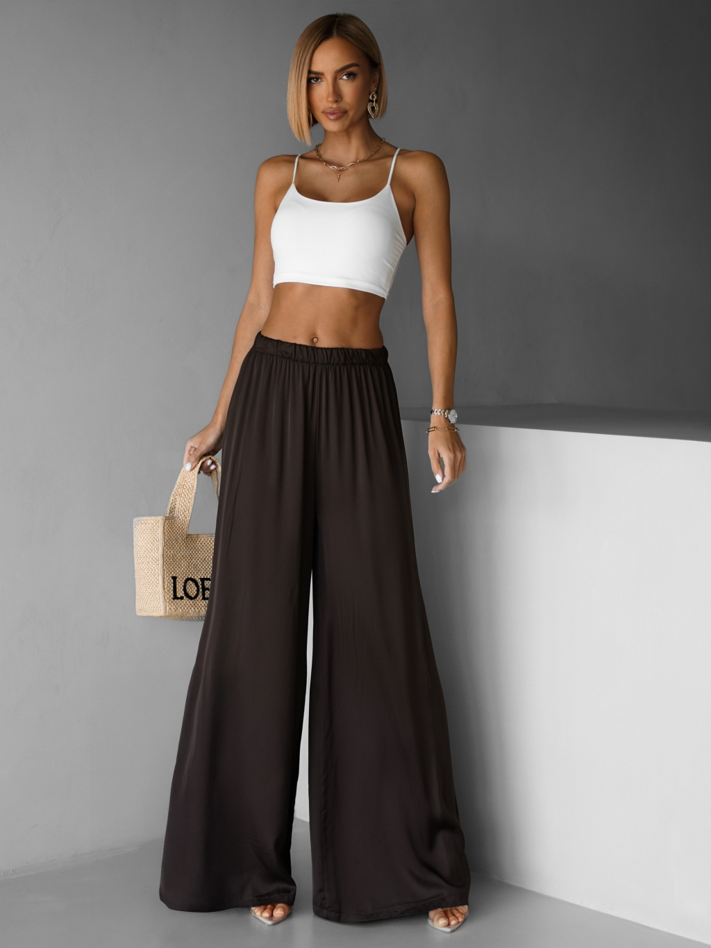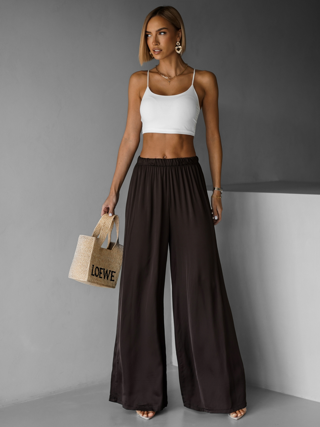 Tmavě hnědé saténové široké kalhoty SITAKE