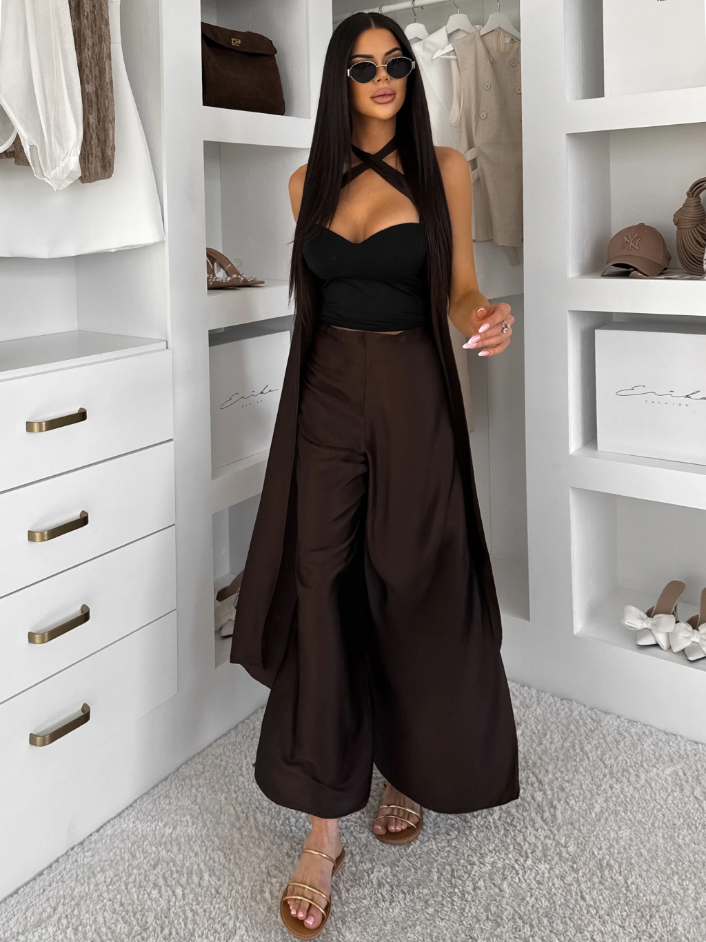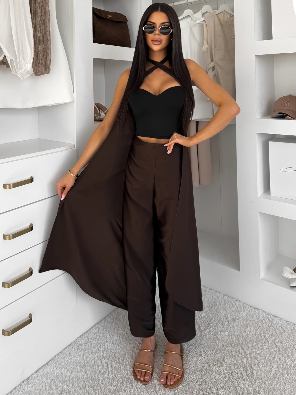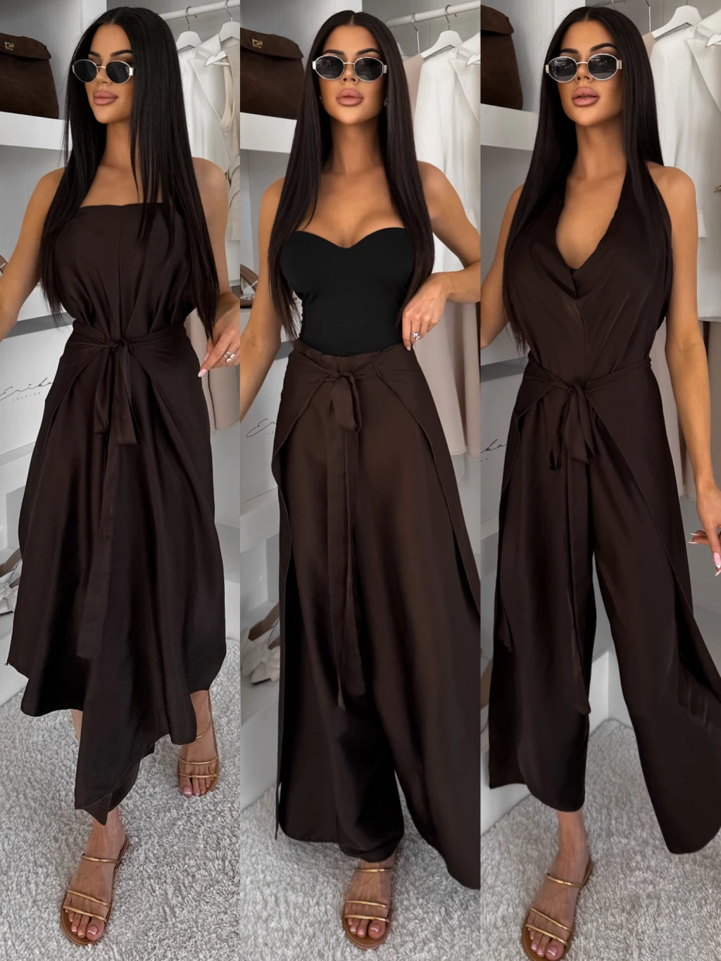 Tmavě hnědé variabilní saténové kalhoty MARINE