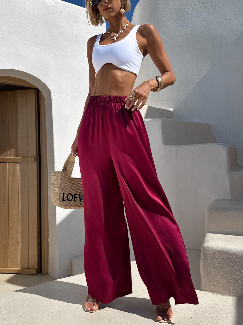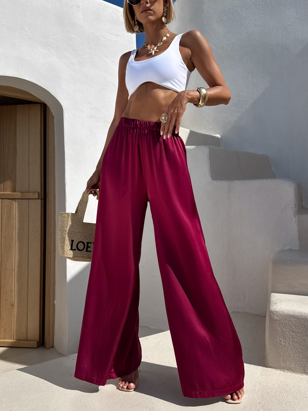 Vínové saténové dlouhé široké kalhoty SITAKE