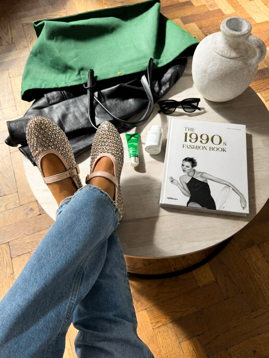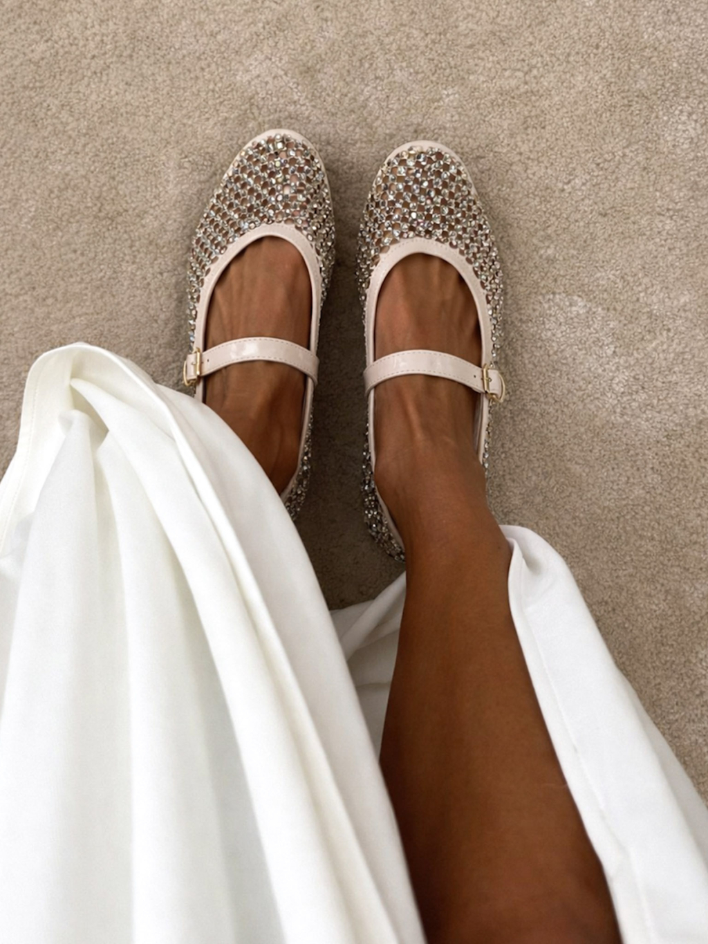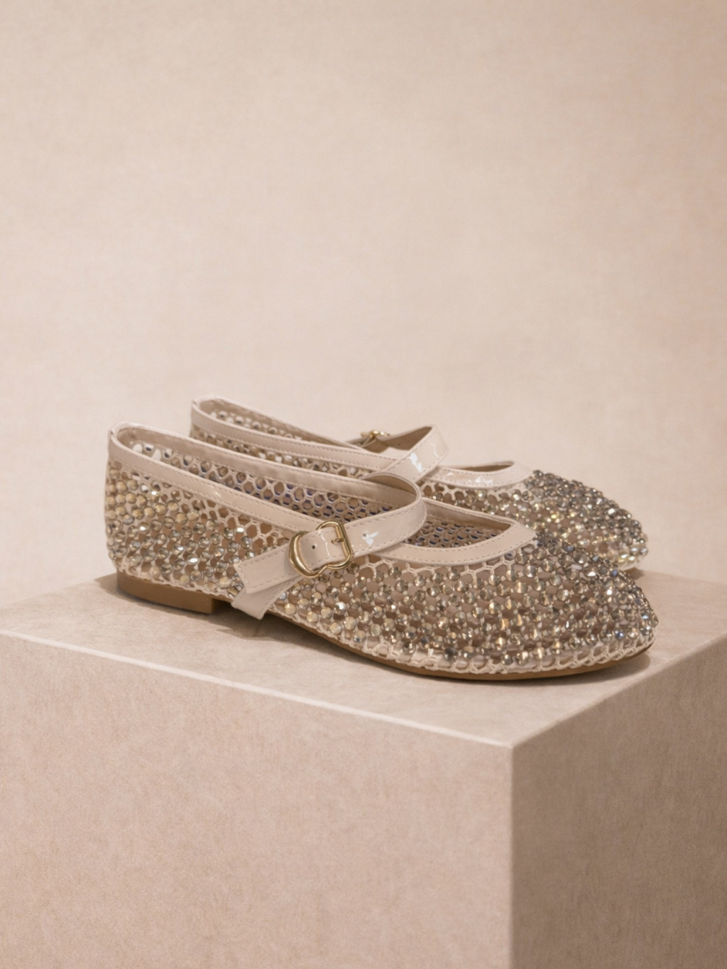 Béžové třpytivé síťované baleríny VYOLA s páskem