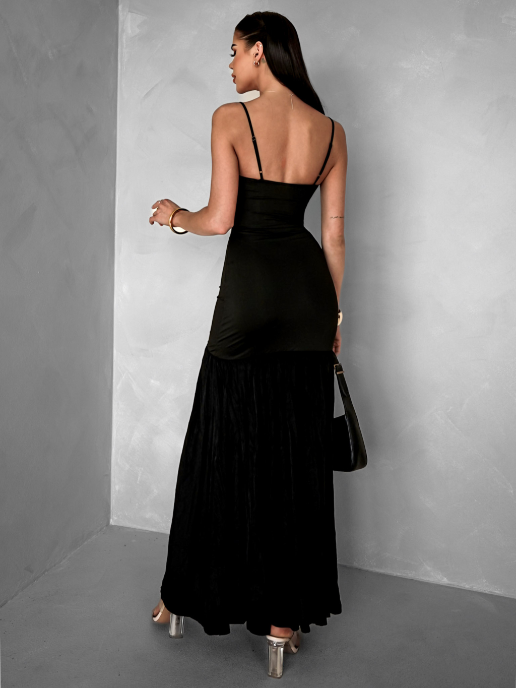 Černé dlouhé elegantní šaty BRIENNE s rozparkem
