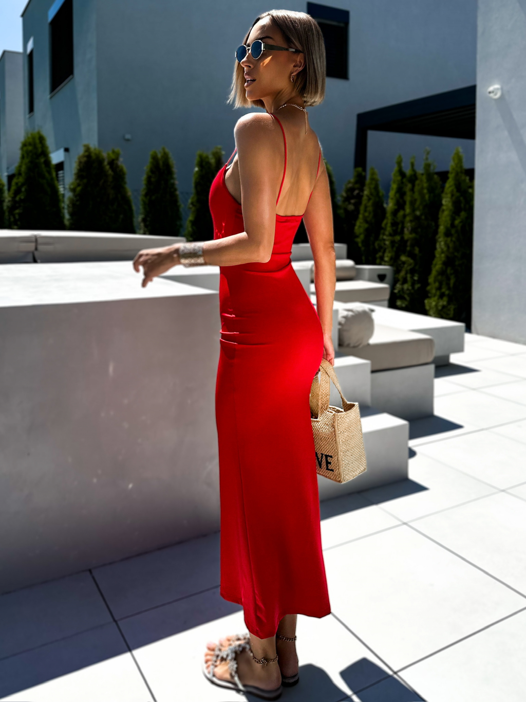 Červené dlouhé úzké šaty ARGIRIS na špagetová ramínka