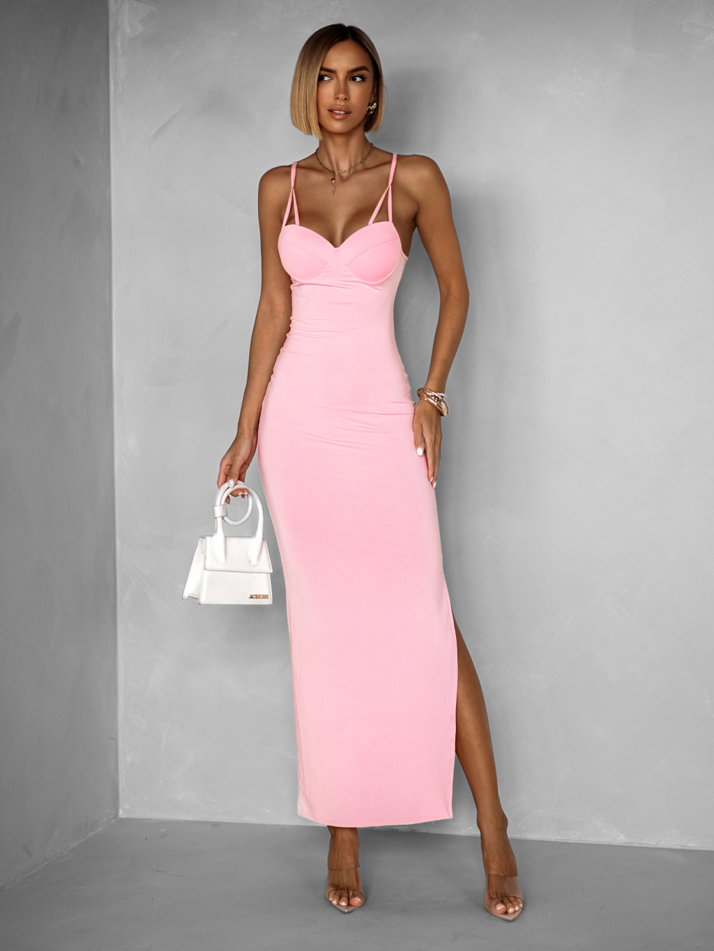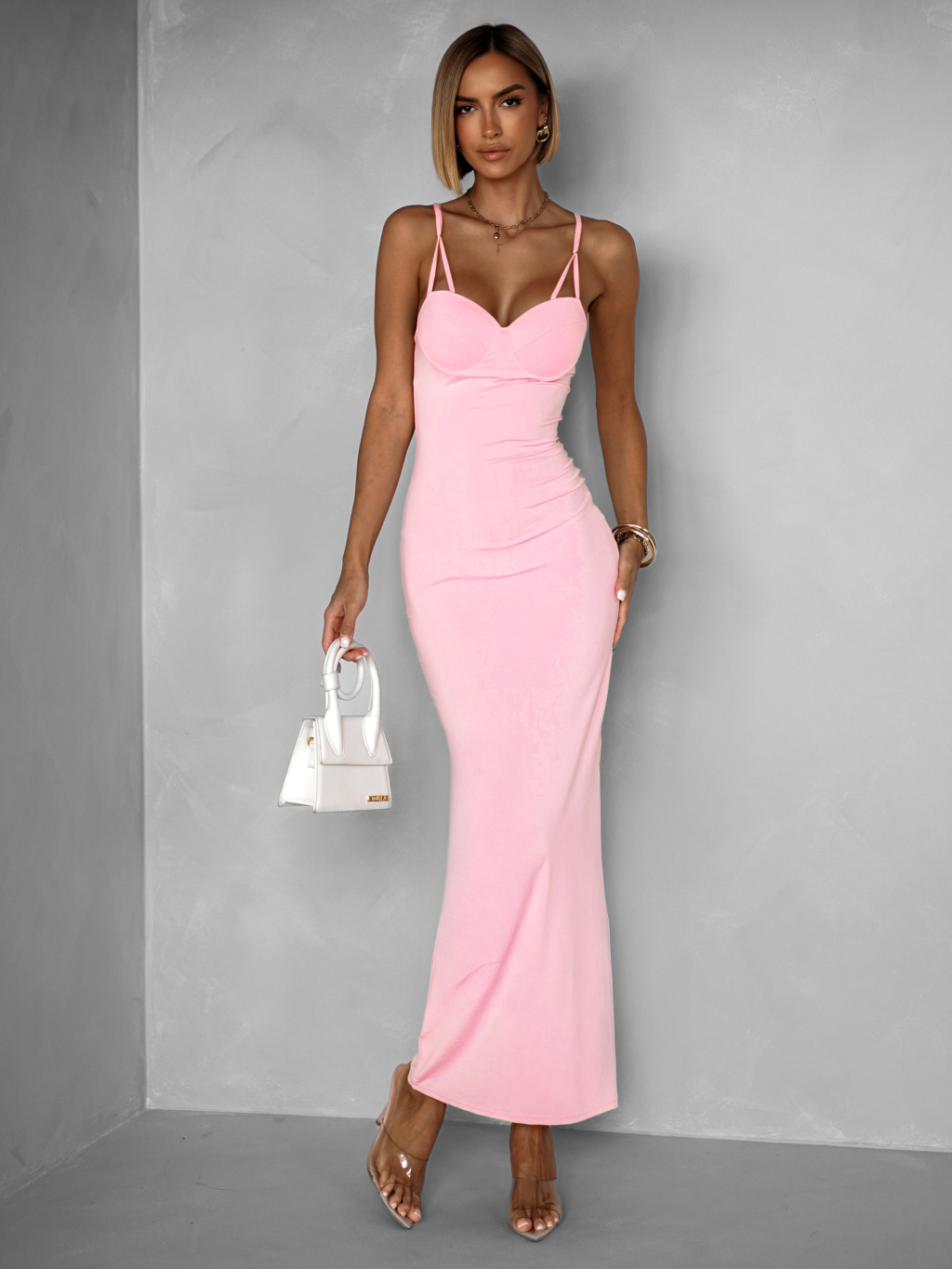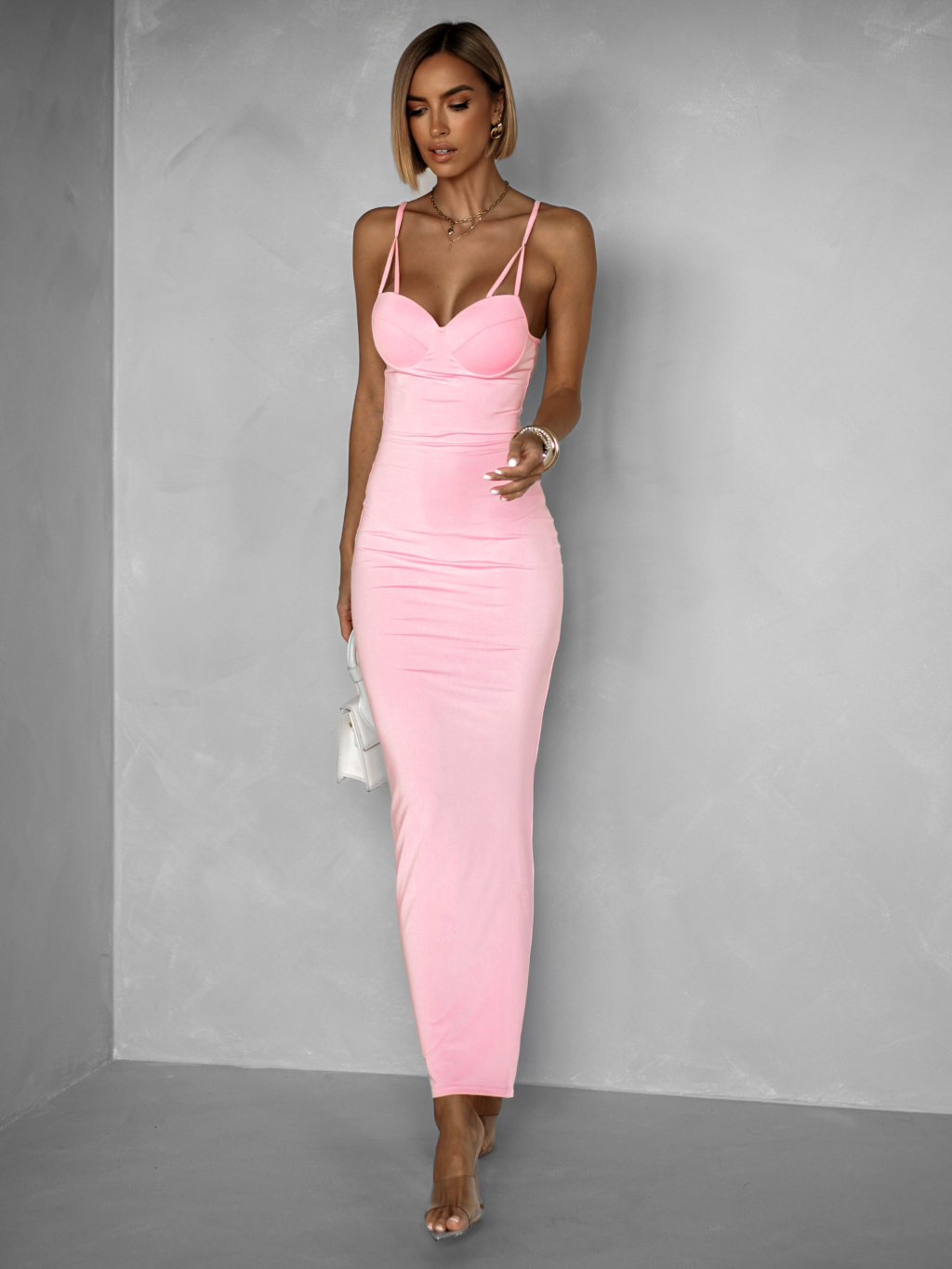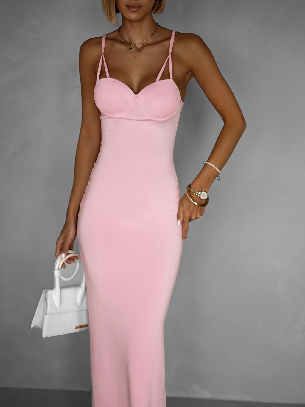 Růžové dlouhé tvarující šaty BRUCEL na ramínka
