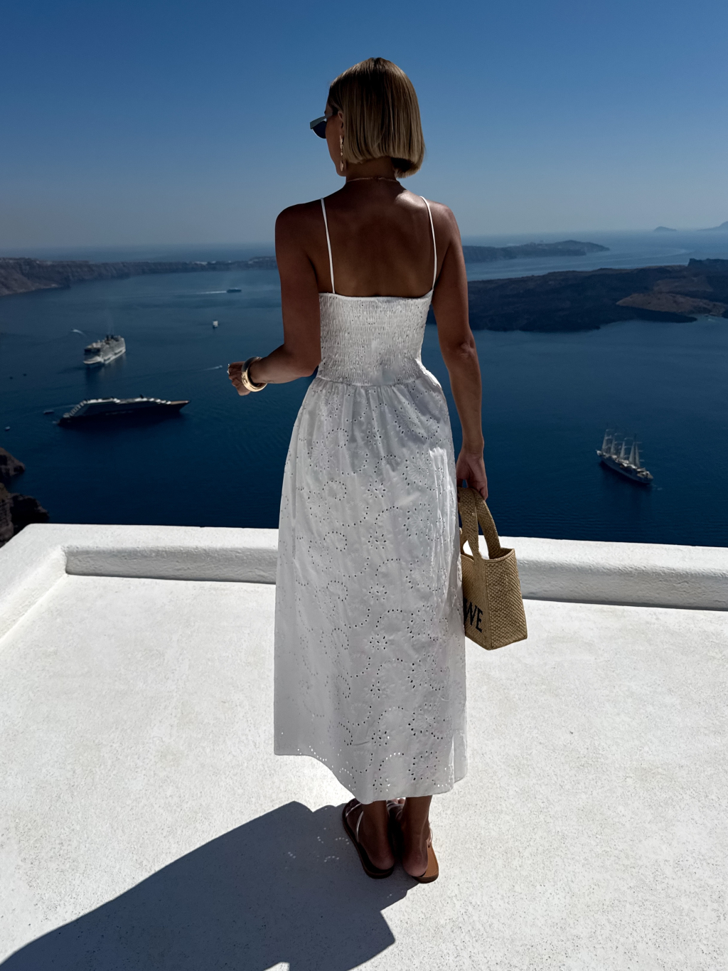 Bílé bavlněné dlouhé letní šaty SPINLOT na ramínka