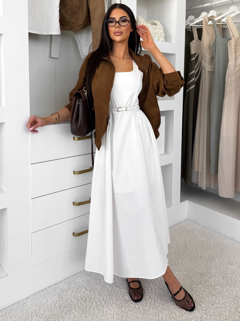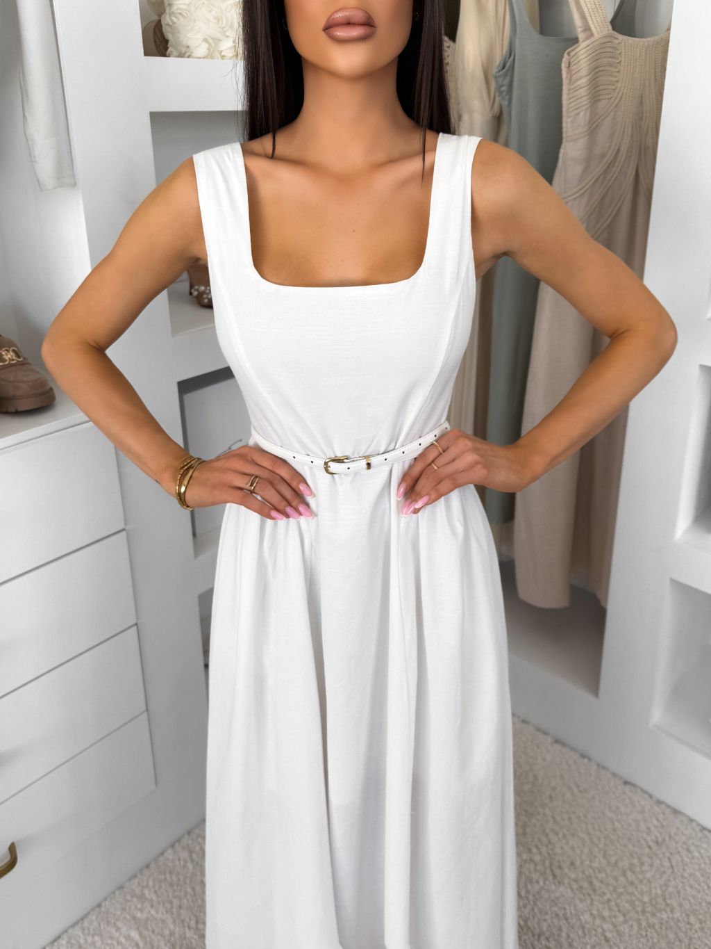 Bílé dlouhé pouzdrové šaty SENTALIA s páskem