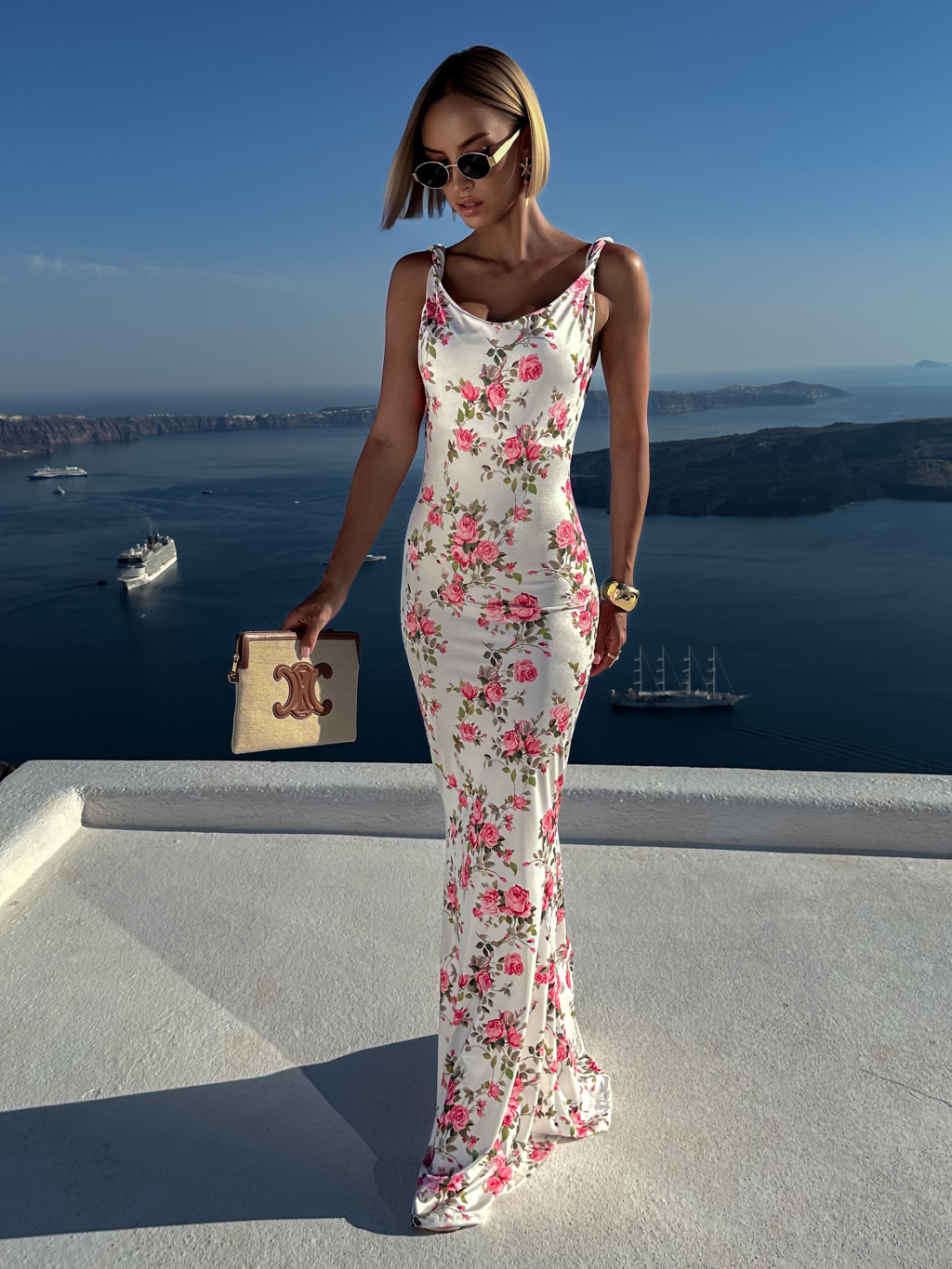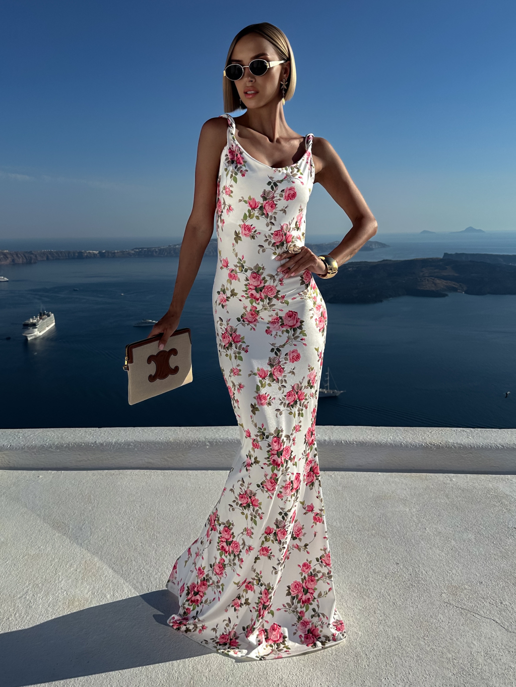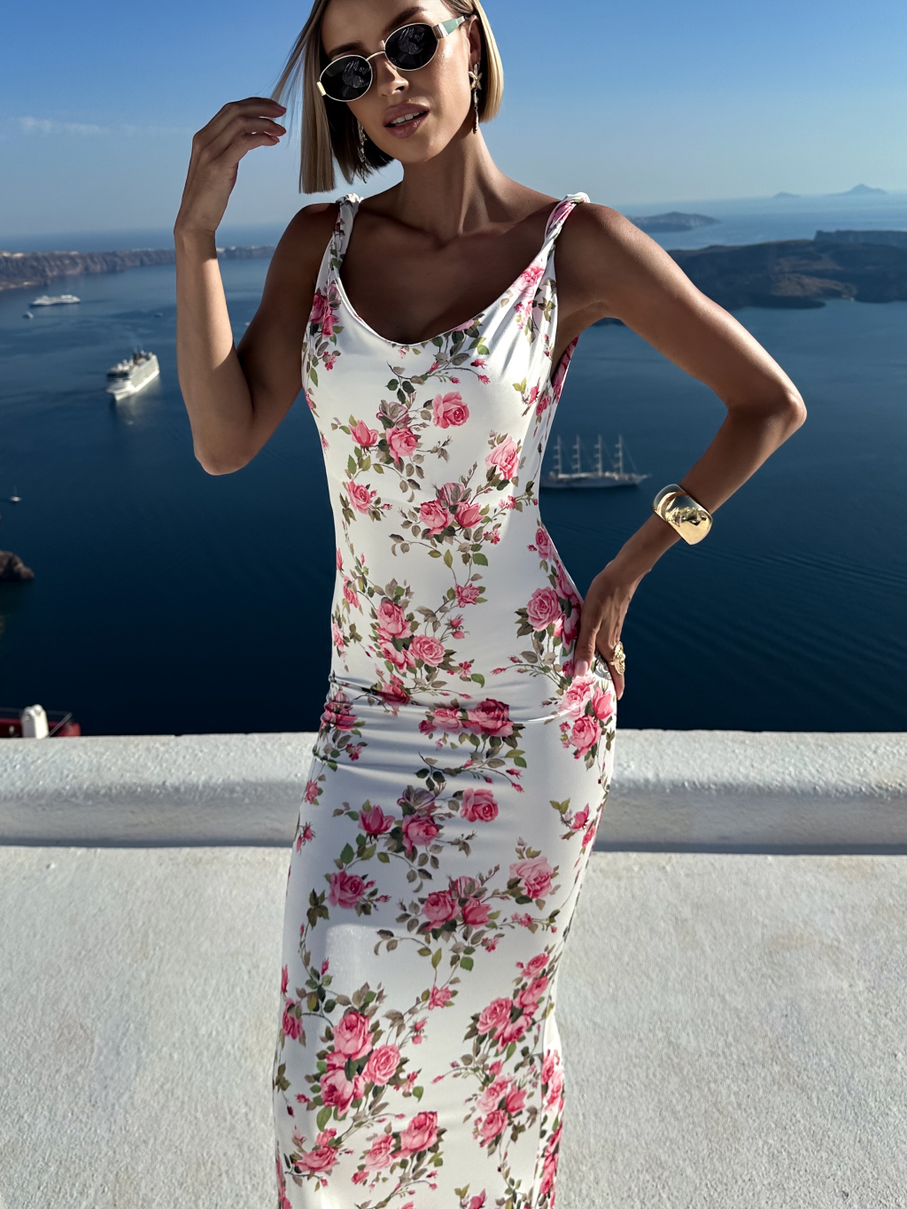 Bílé květinové dlouhé šaty MURAKA s růžemi