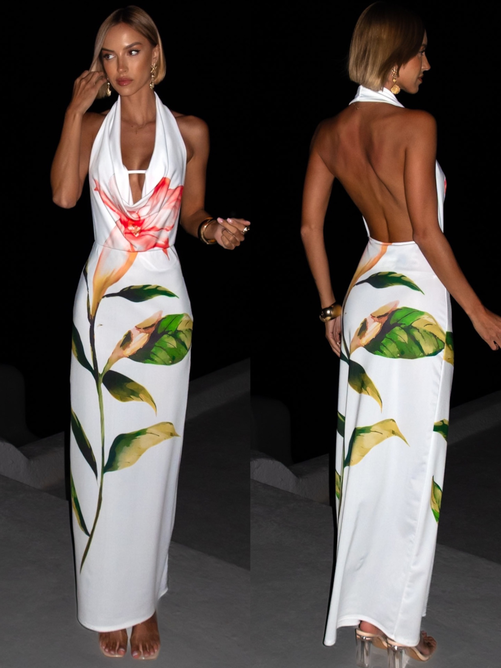 Bílé letní dlouhé šaty ATYNA s květinovým vzorem