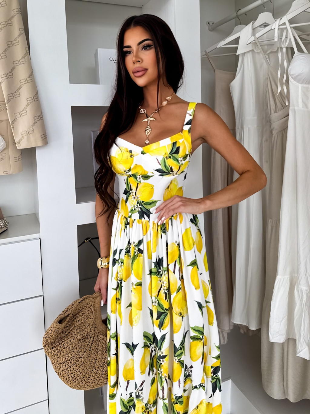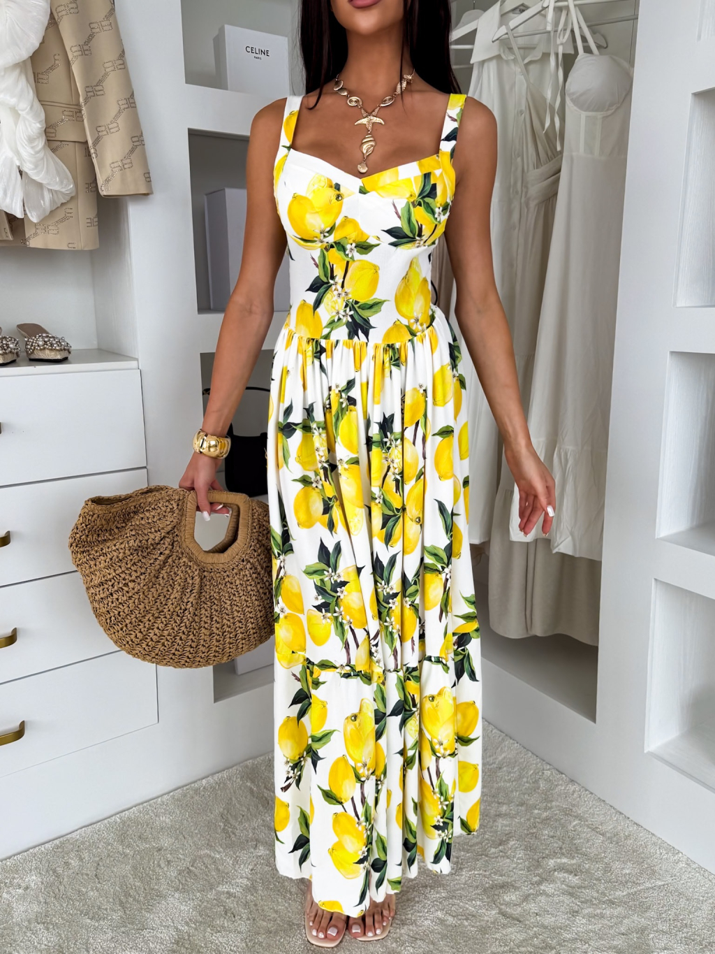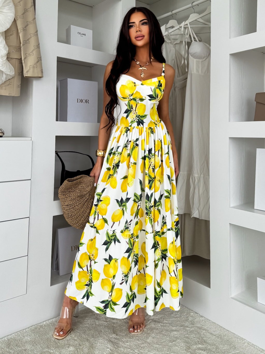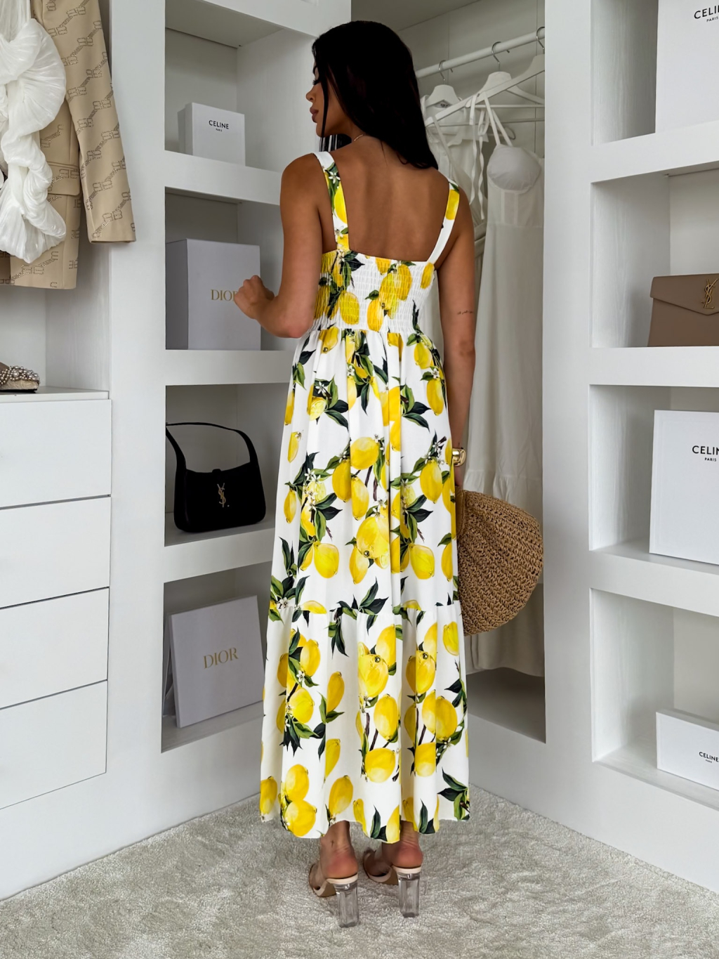 Bílé letní dlouhé šaty THEADY s citrony