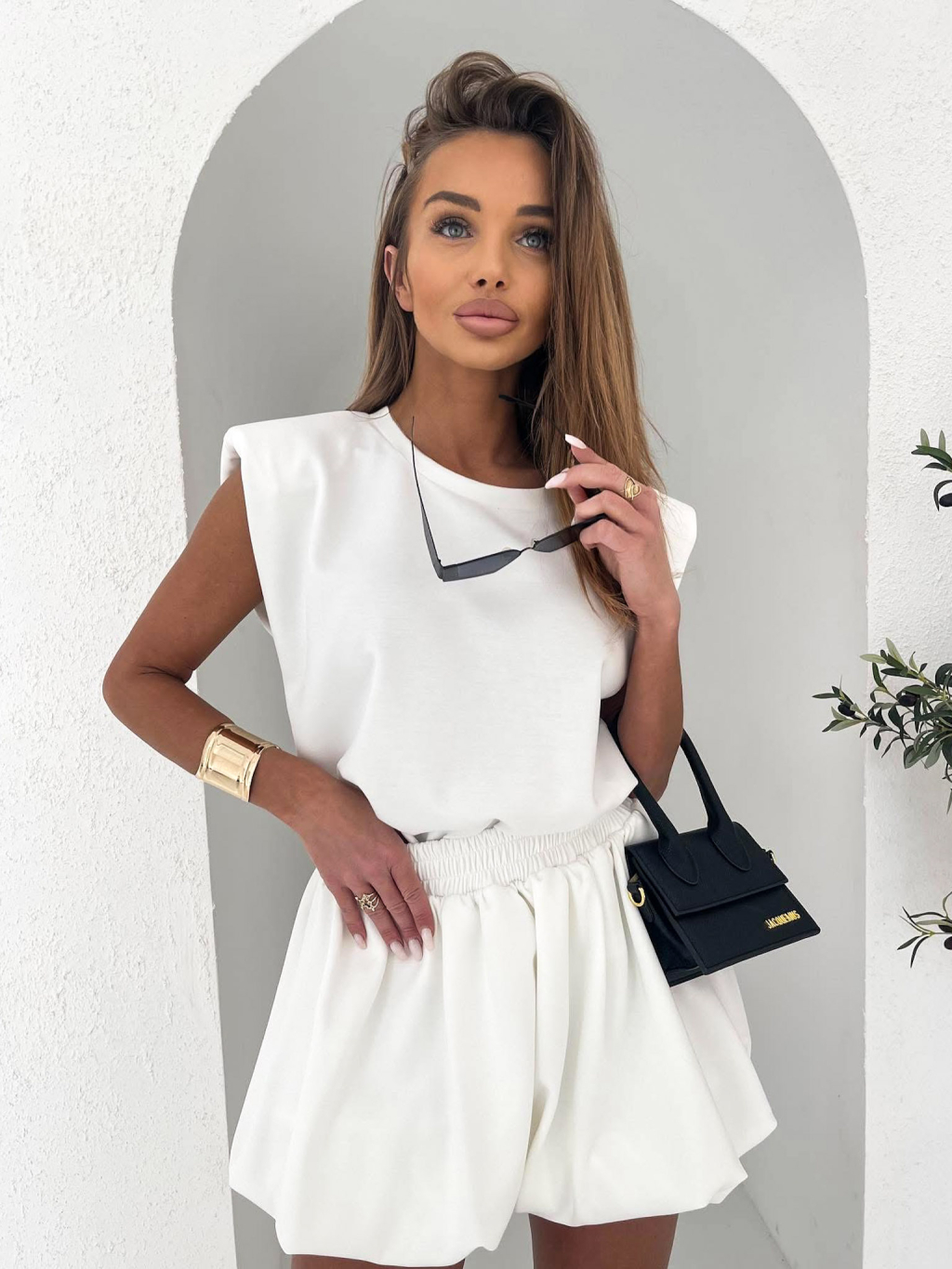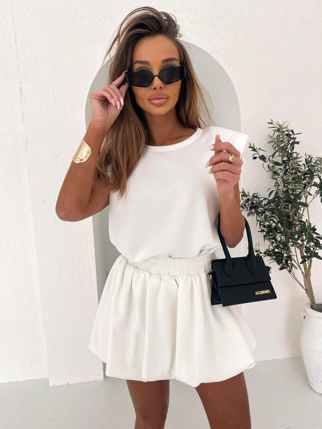 Bílý teplákový krátký komplet TAPPY se sukní