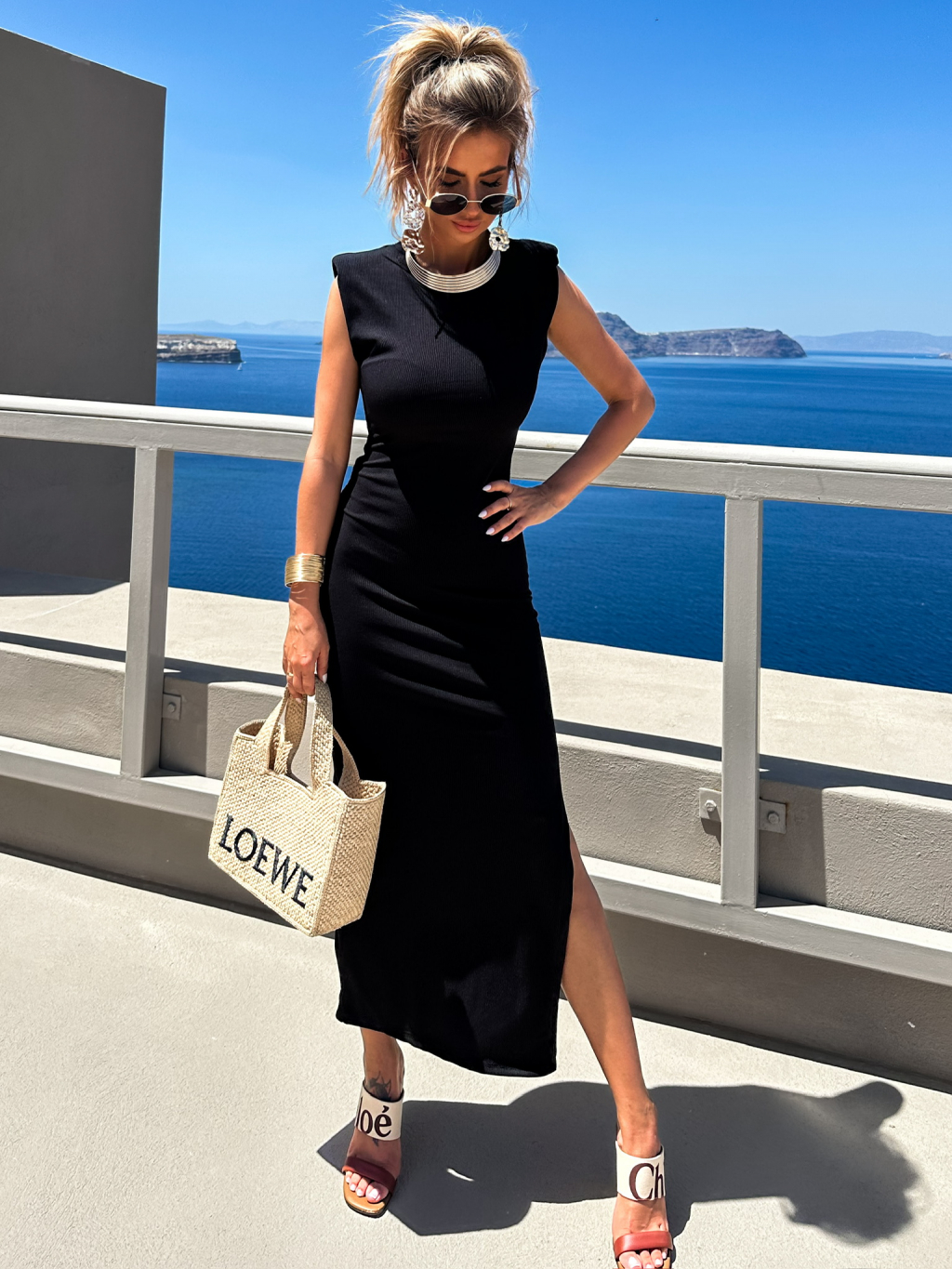 Černé dlouhé basic letní šaty HOOPER s vycpávkami