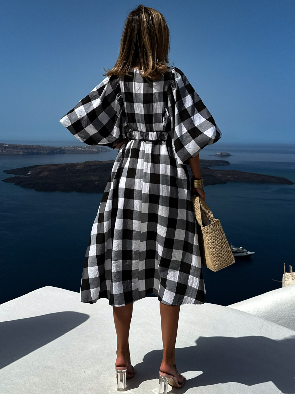 Černé kostkované volné šaty JUSTYN 100% bavlna