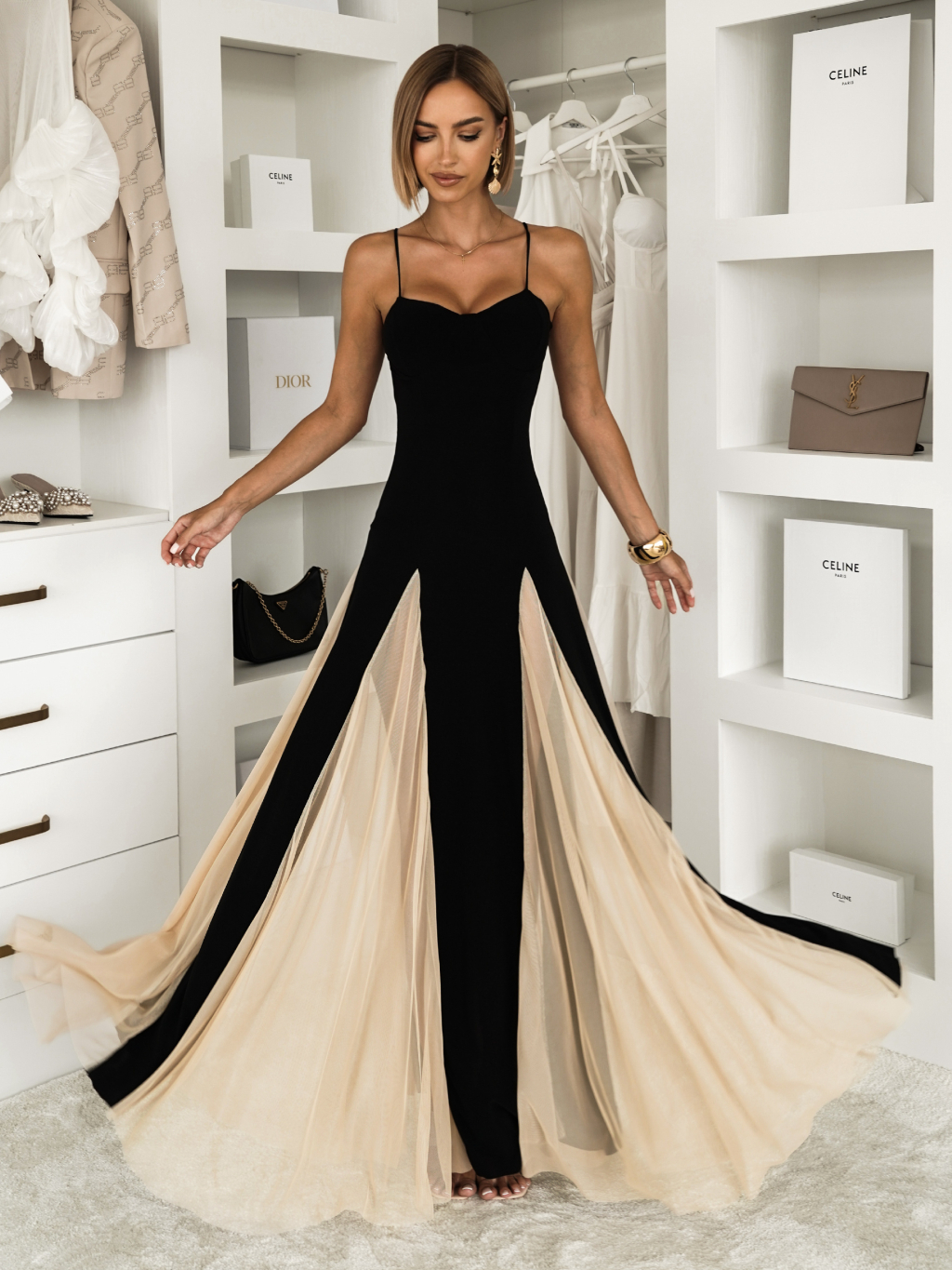 Černé maxi dlouhé elegantní šaty DRELVIK