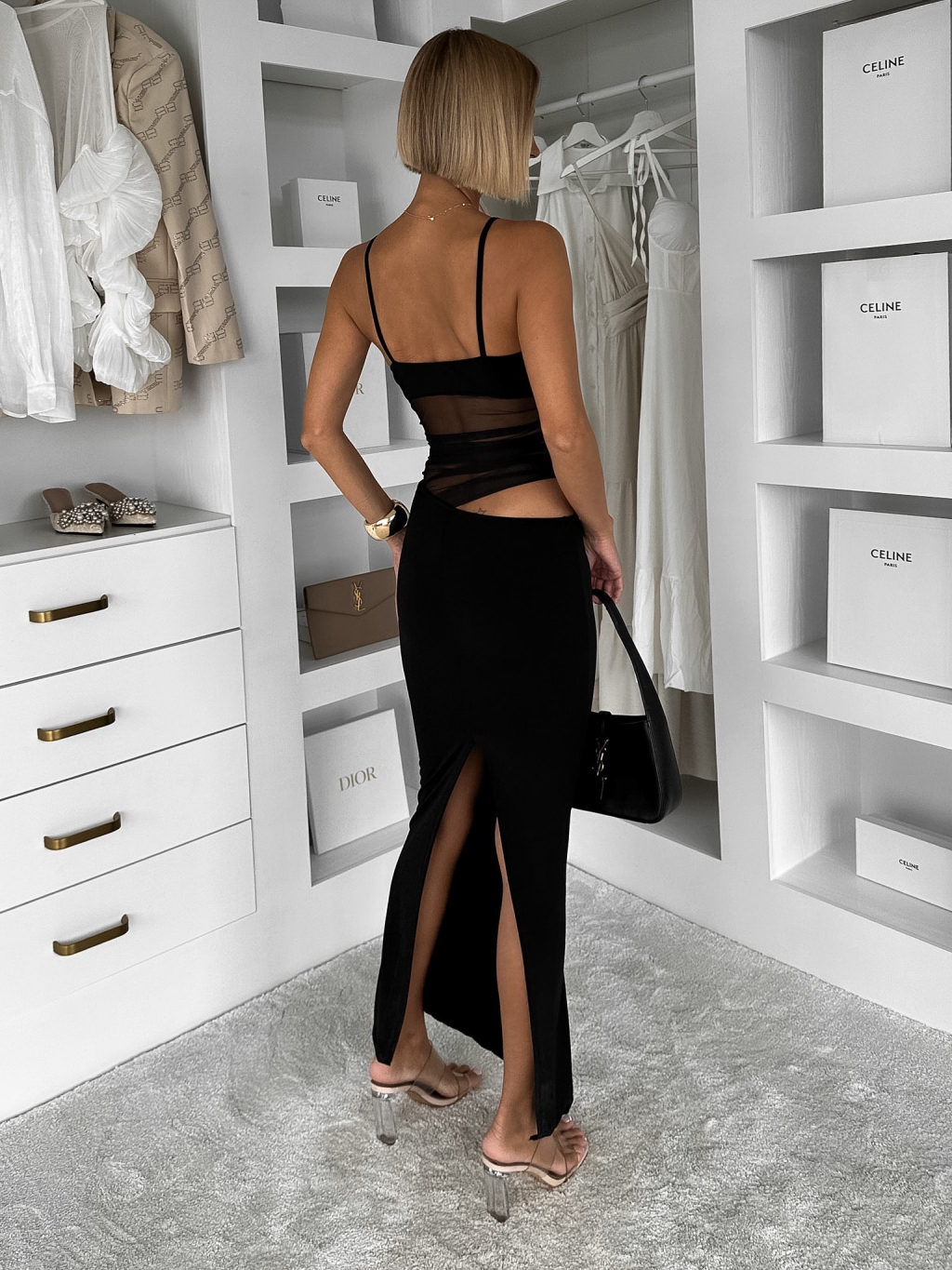 Černé přiléhavé šaty RIVEYA s průstřihy