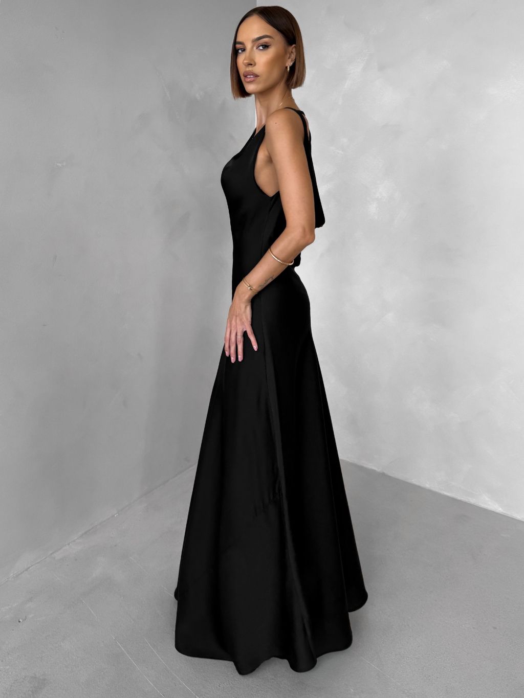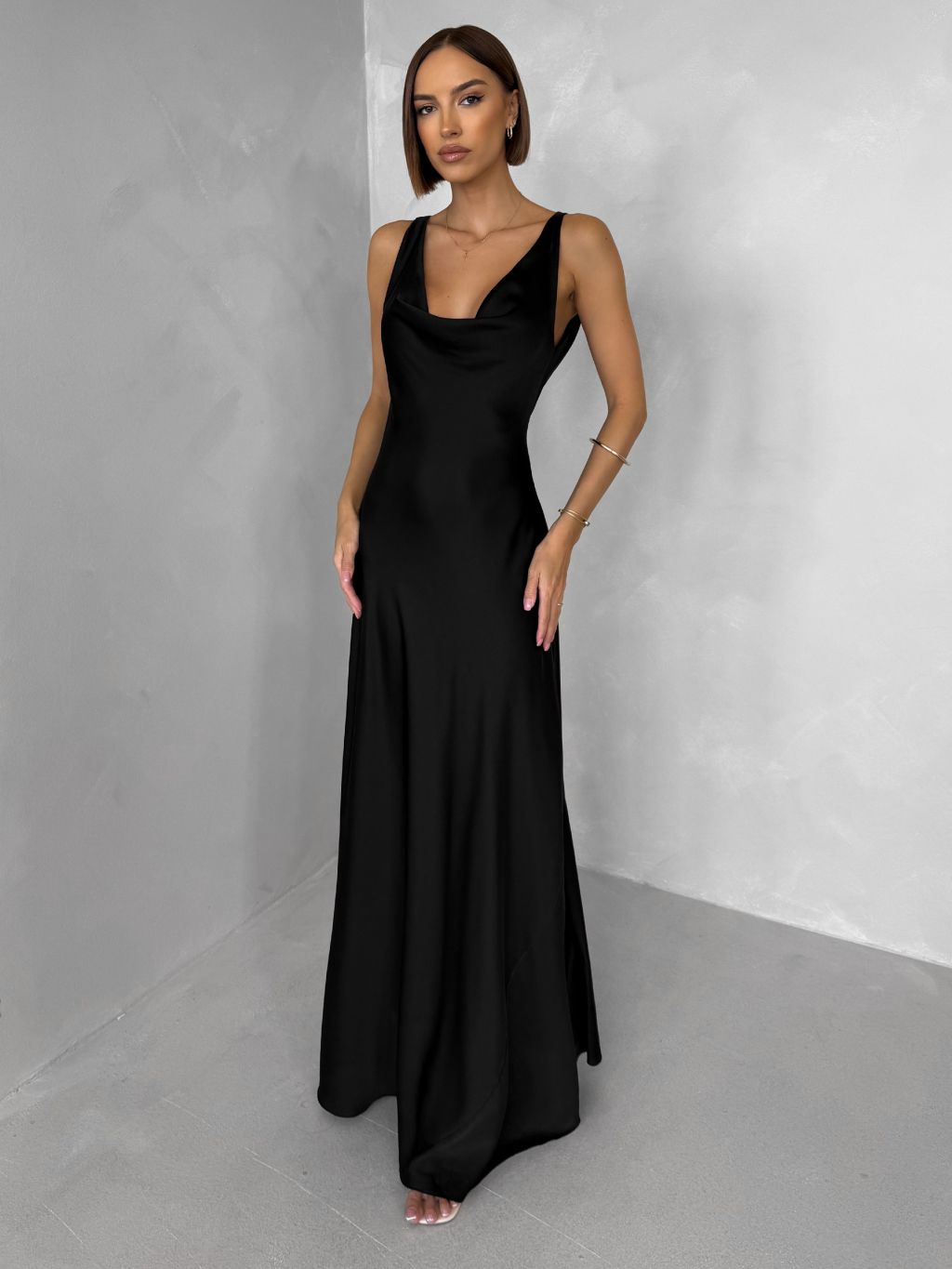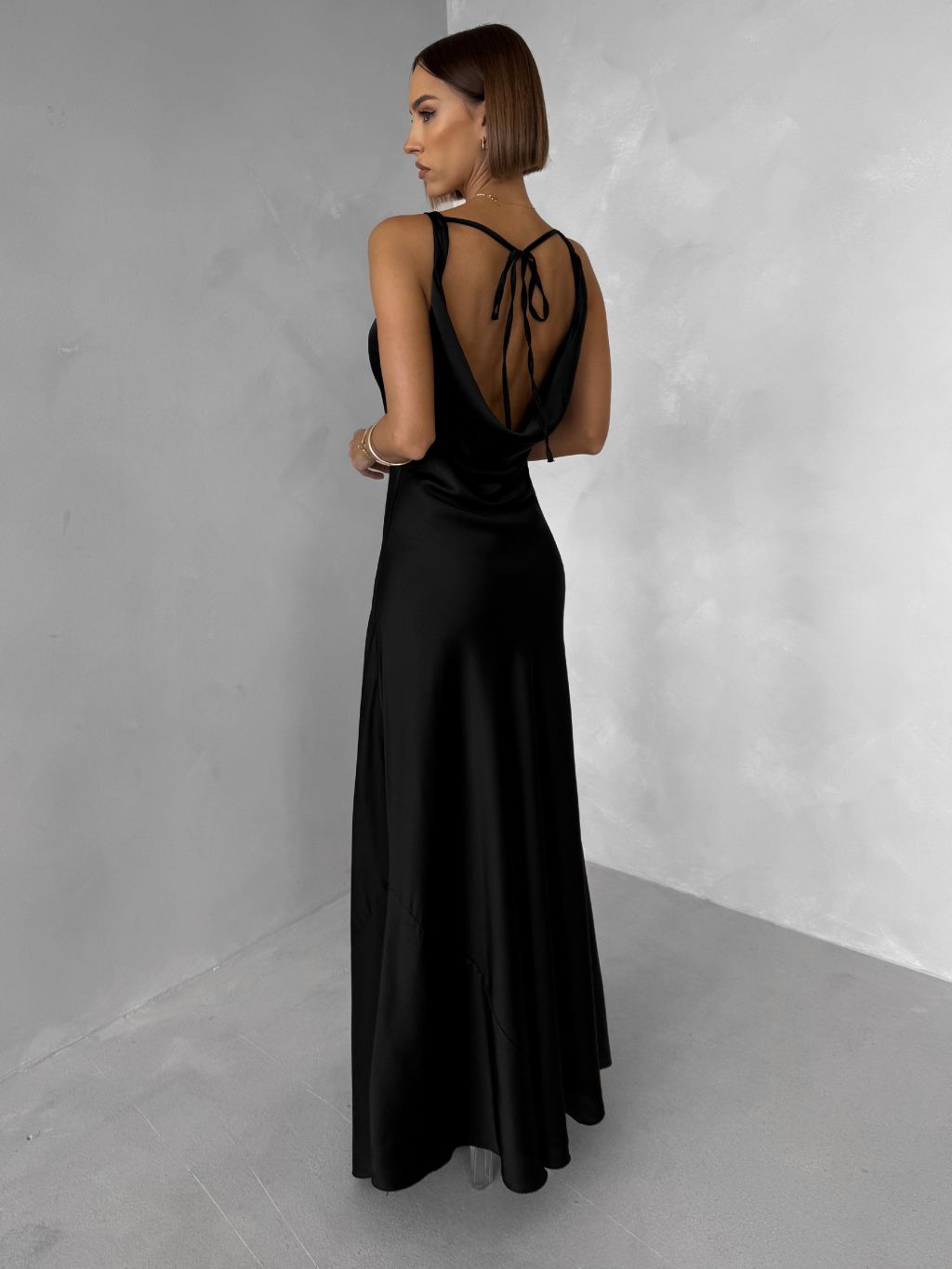 Černé saténové dlouhé šaty MIREVE s odhalenými zády