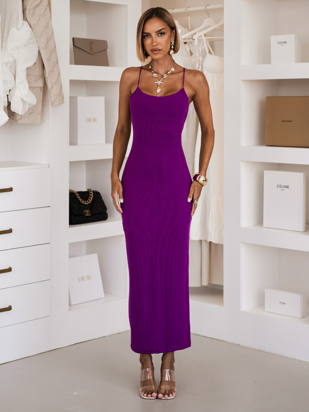 Fialové dlouhé šaty SLOMYX se špagetovými ramínky
