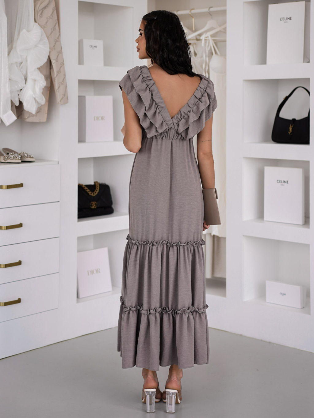 Hnědé elegantní letní maxi šaty BLANQE s volánky