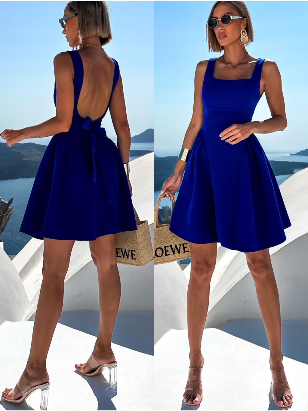Královsky modré vypasované krátké šaty ULJANA