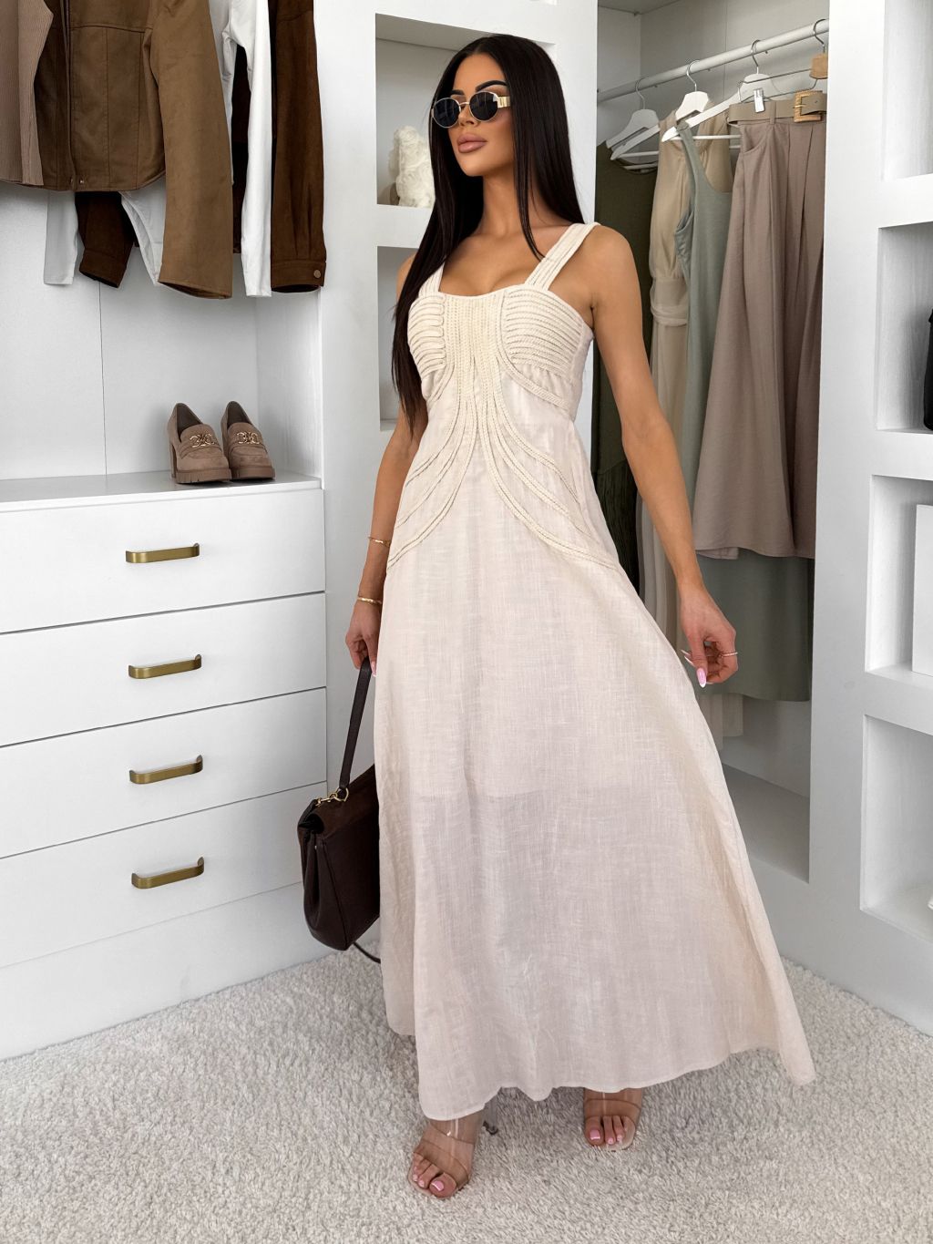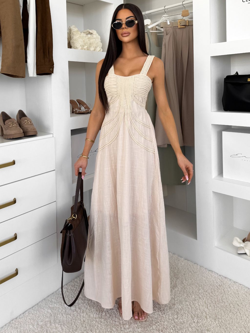 Krémové dlouhé boho šaty HESPERIA na ramínka