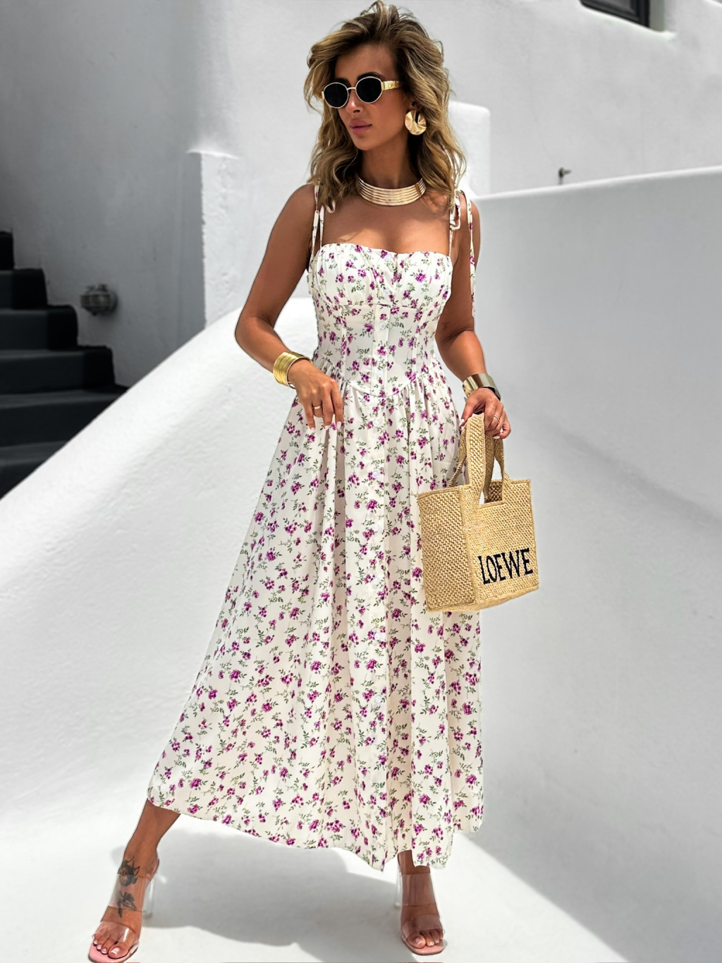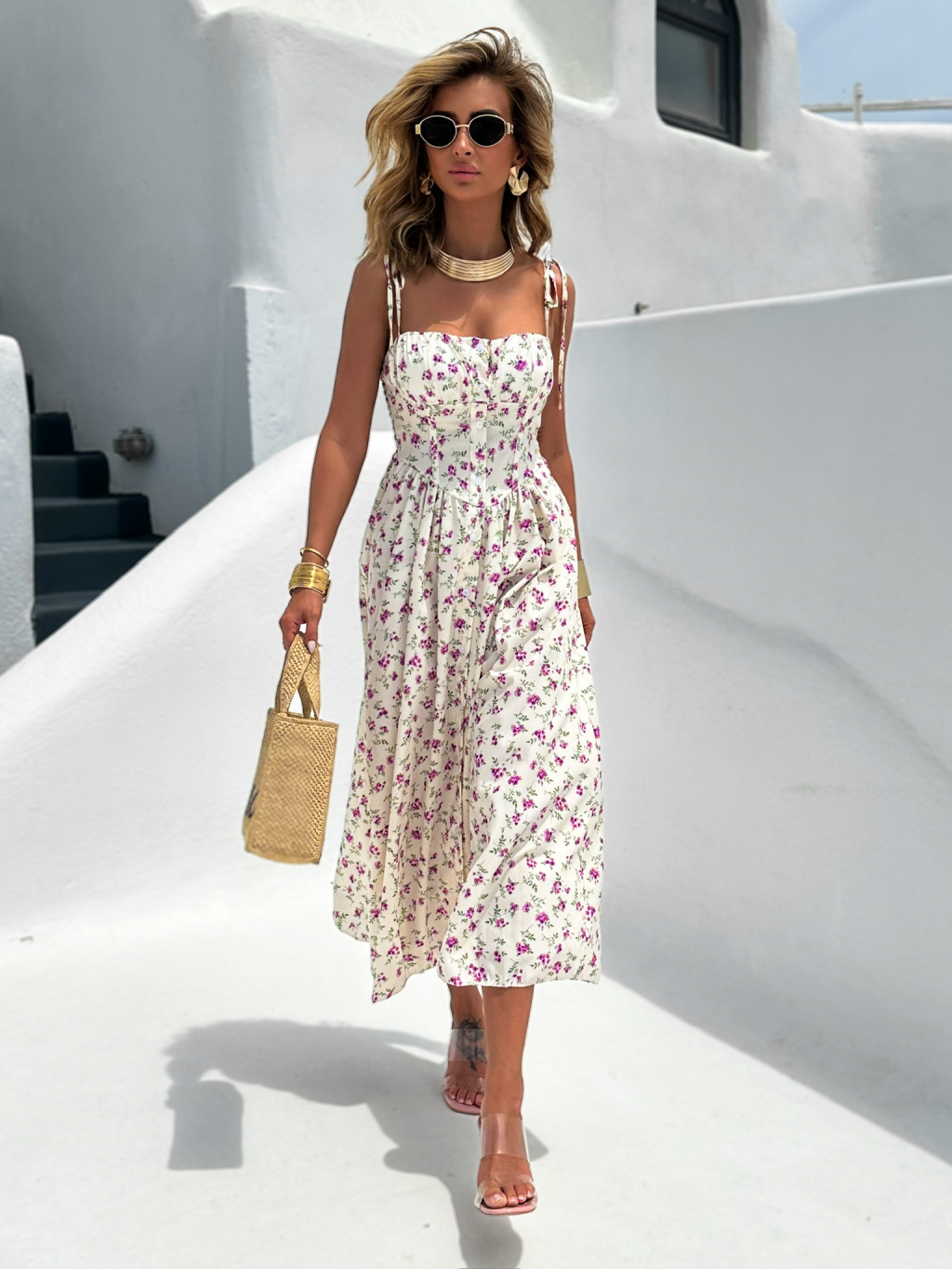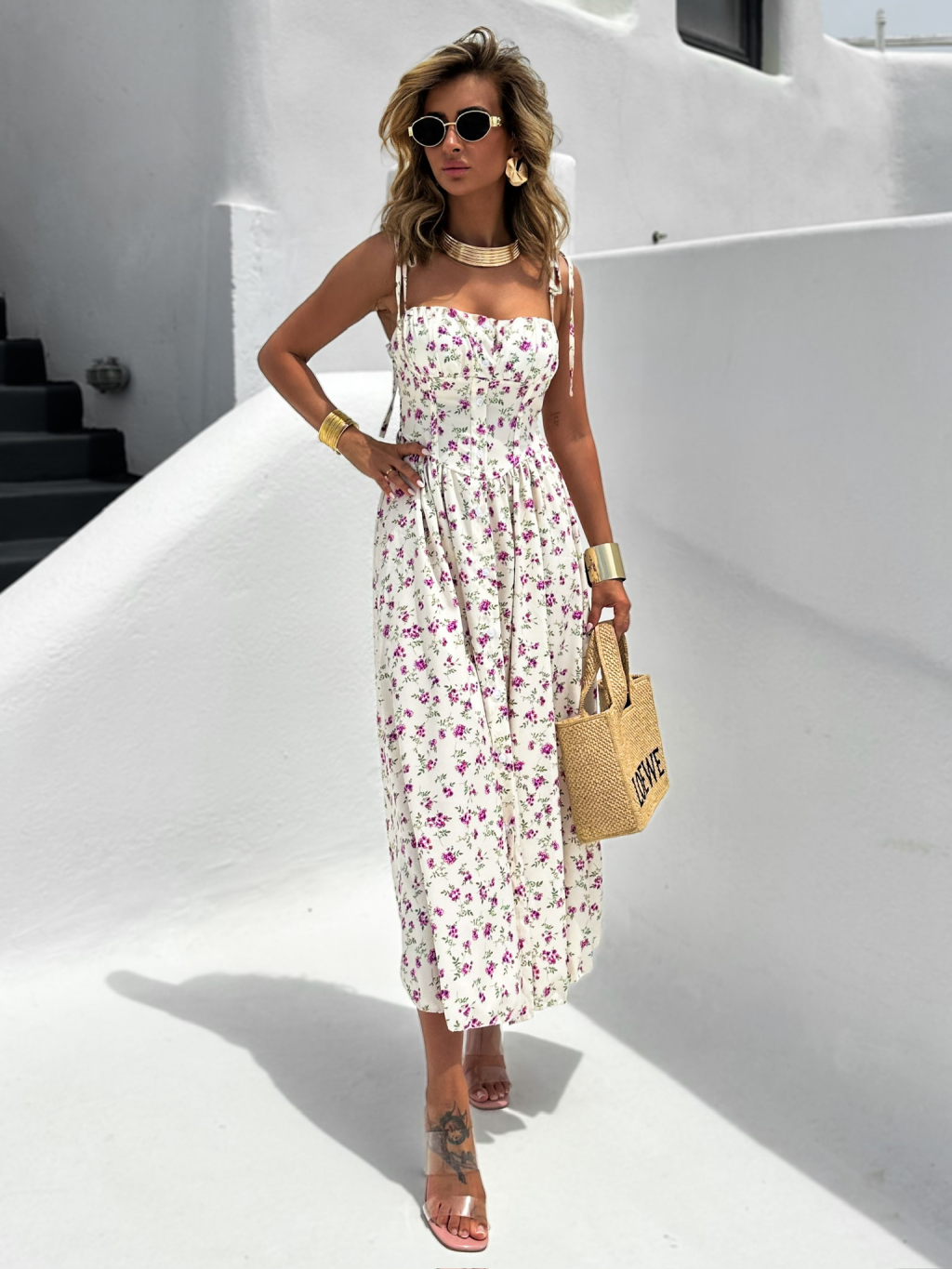 Krémové letní vzdušné šaty KORZIT s květinovým vzorem