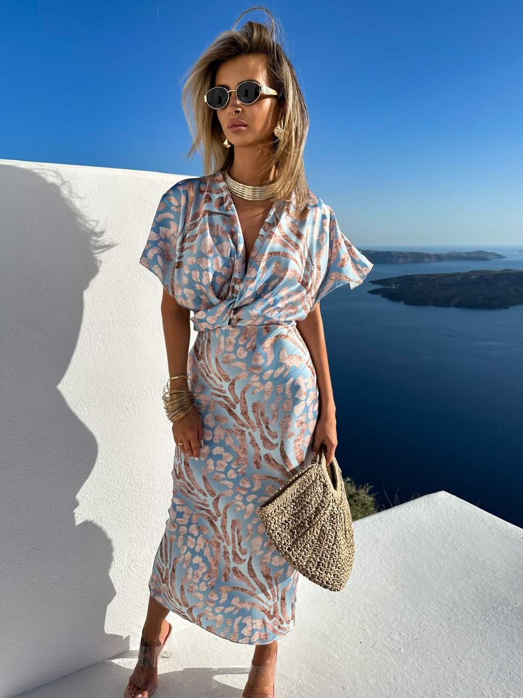 Modré elegantní šaty SQUARD s leopardím vzorem