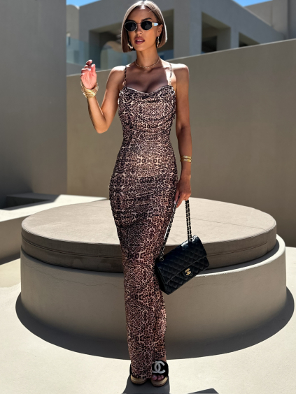 Růžové elegantní šaty SQUARD s leopardím vzorem
