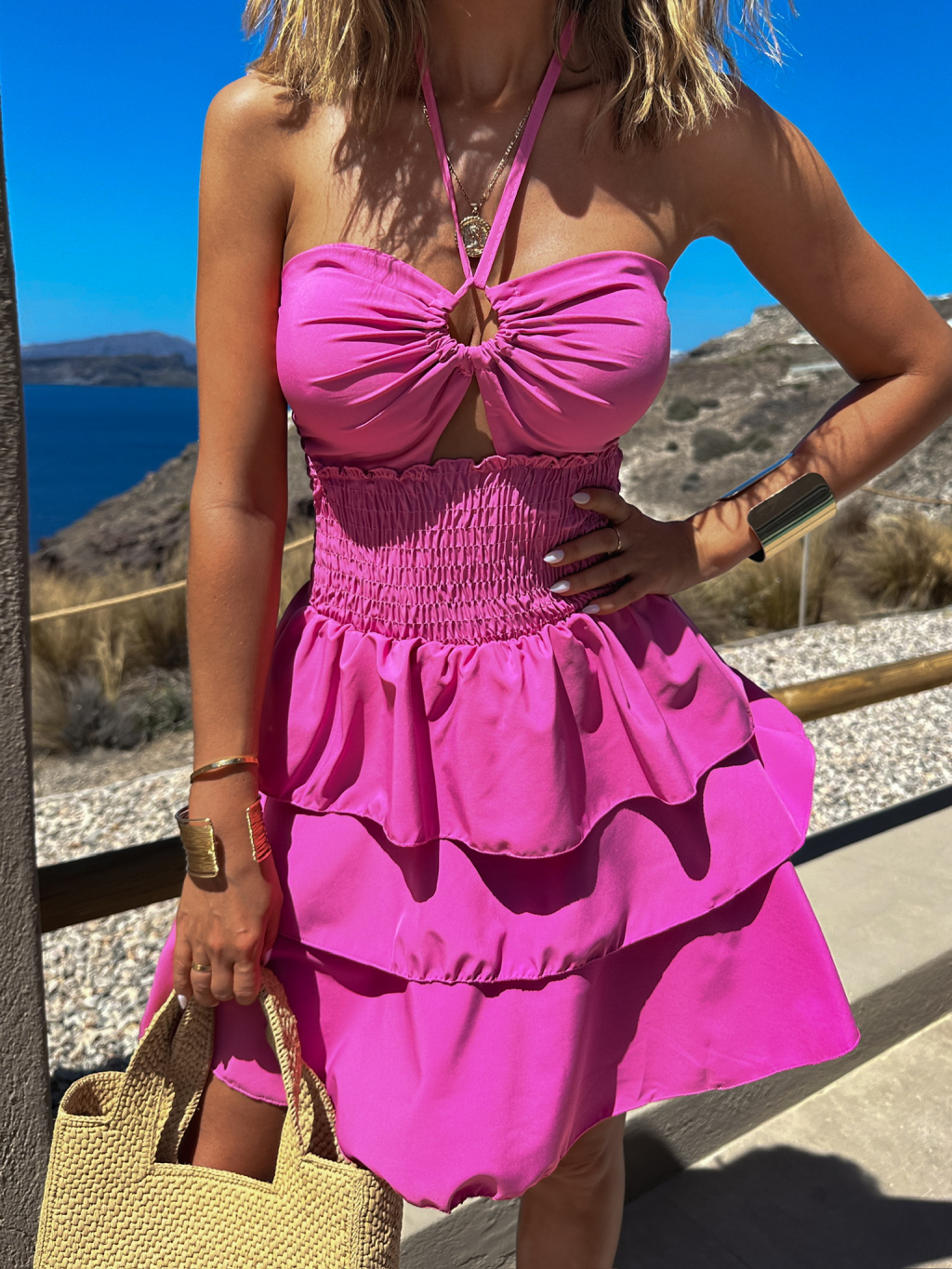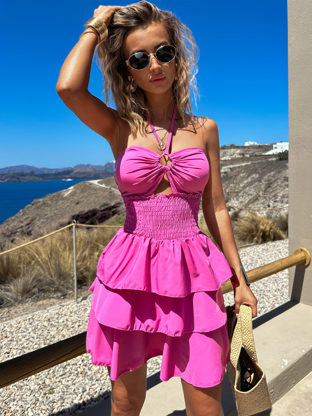 Růžové volánkové krátké šaty FOTIS