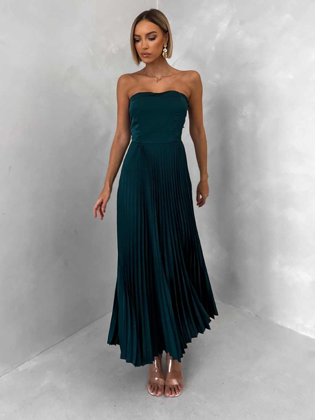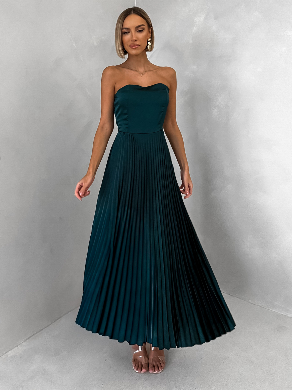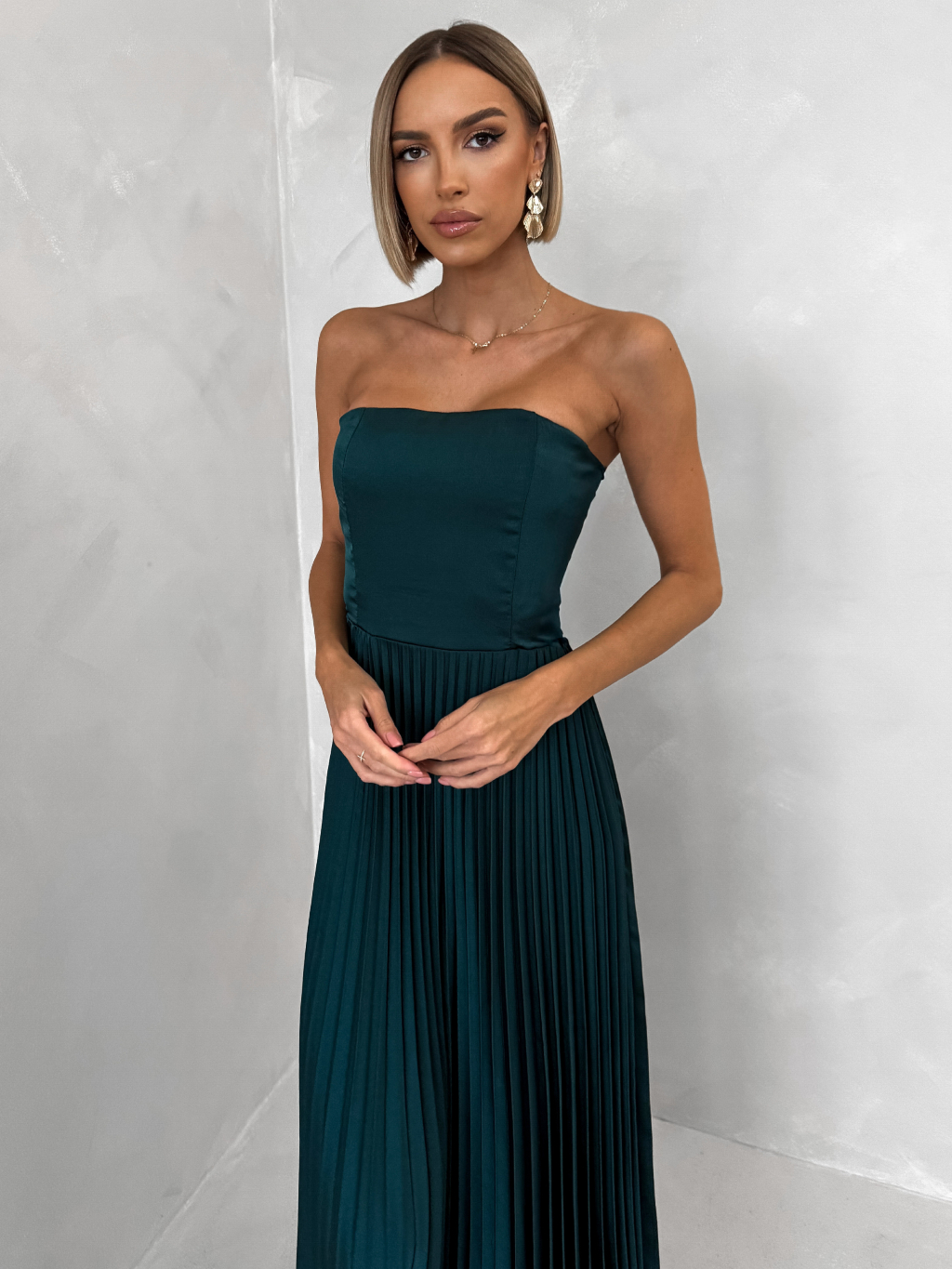 Smaragdové letní plisované šaty CAPRIE bez ramínek