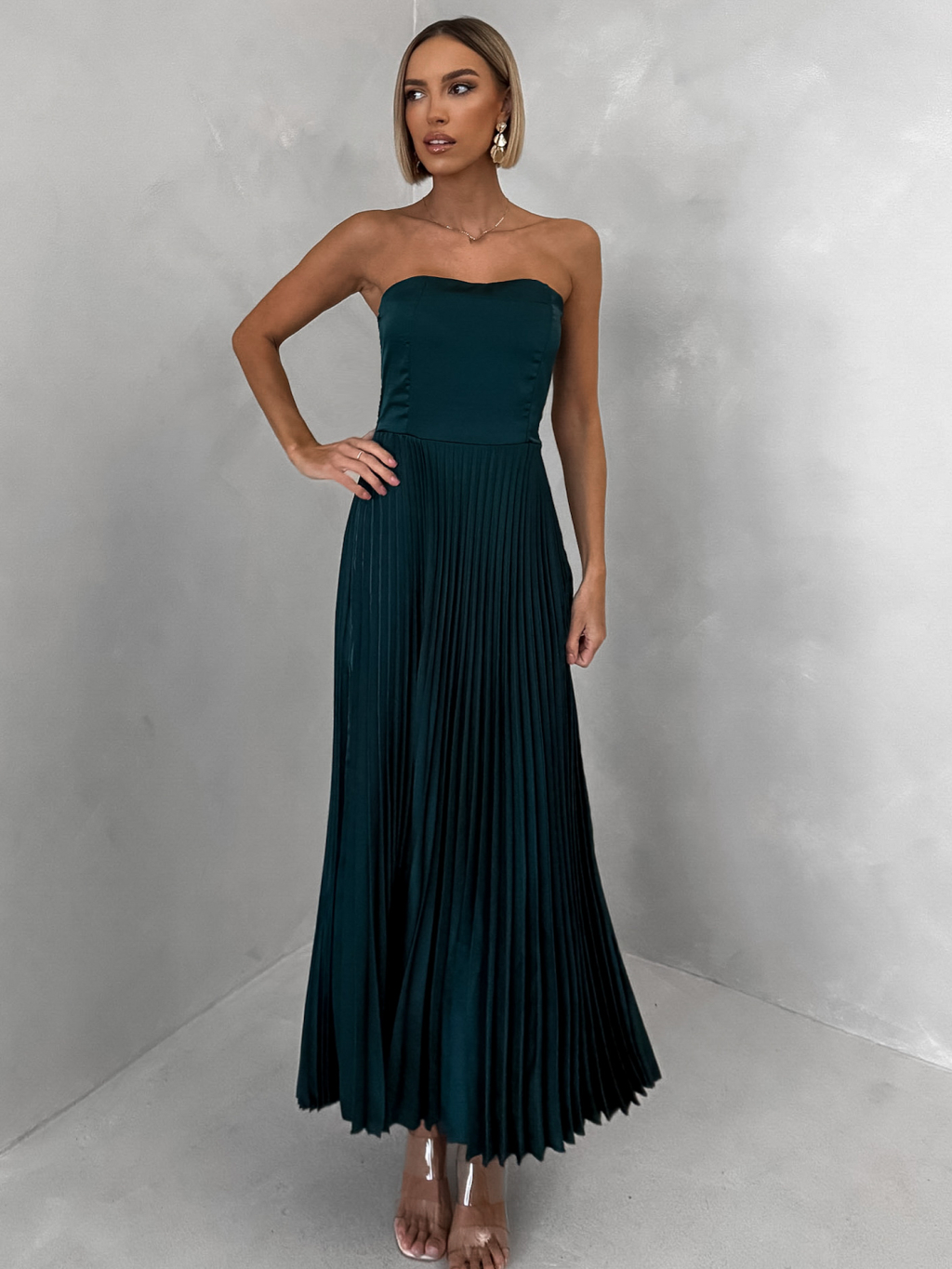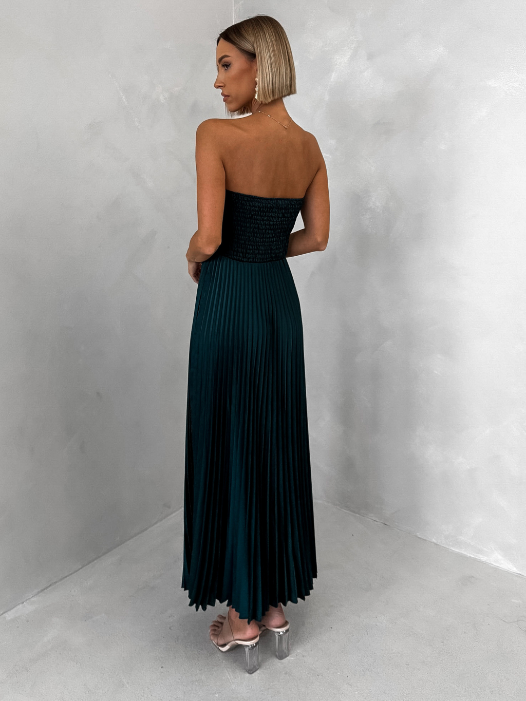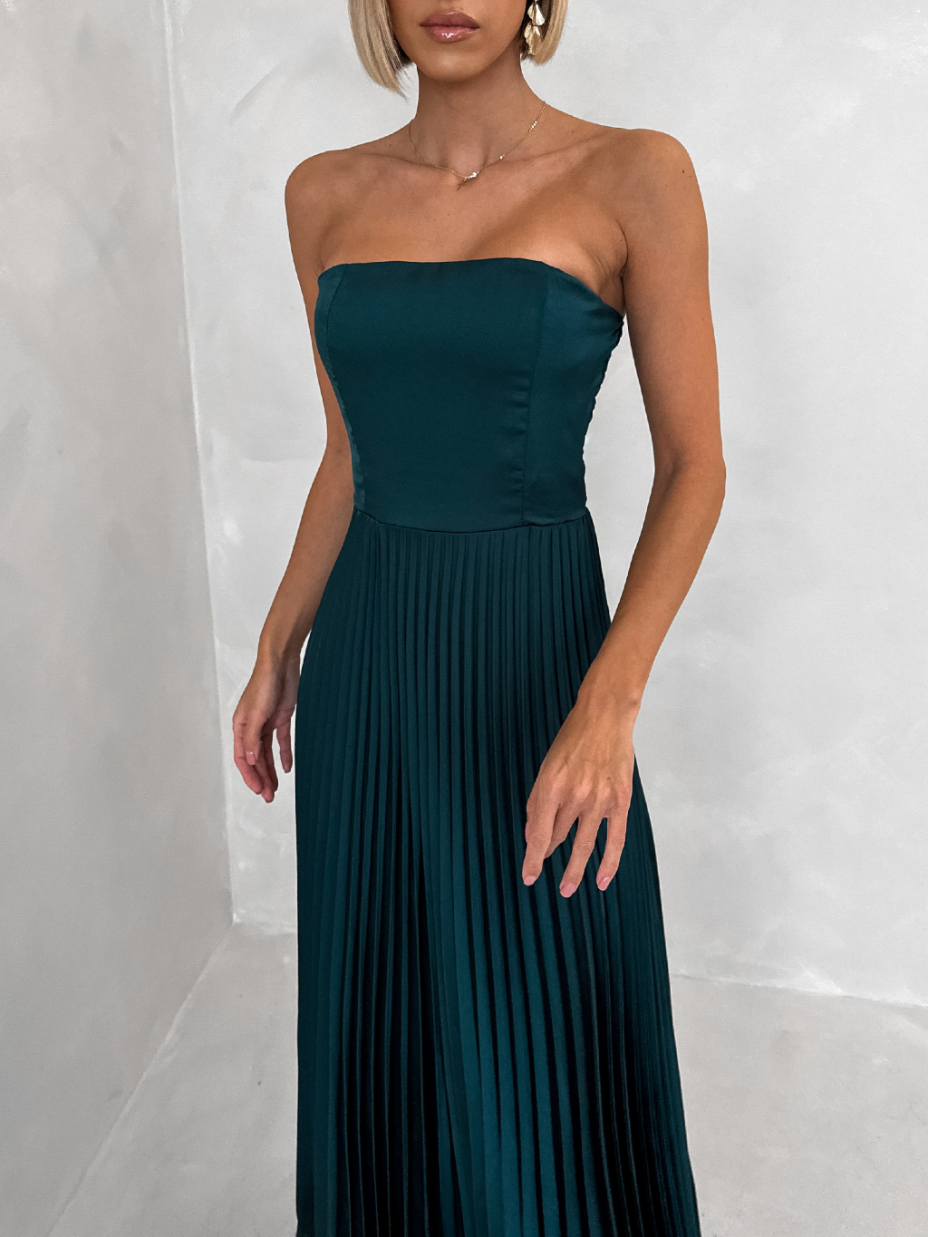 Smaragdové letní plisované šaty CAPRIE bez ramínek