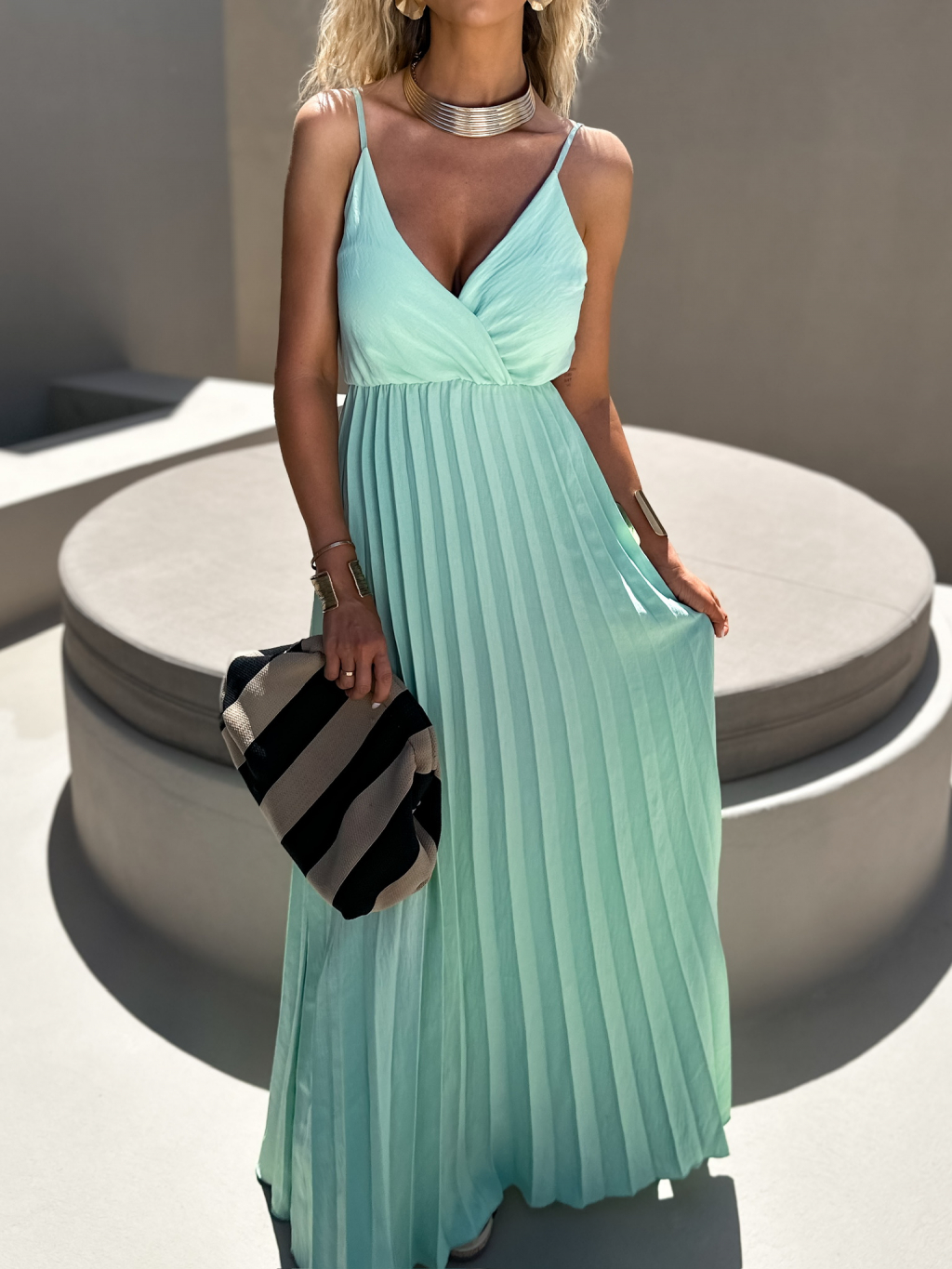 Světle zelené plisované dlouhé letní šaty SUNLOVE