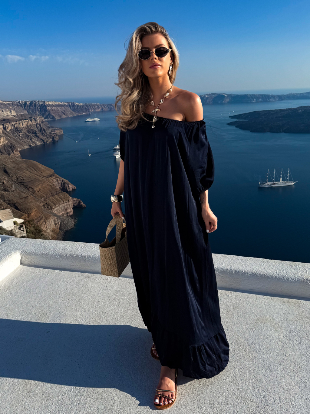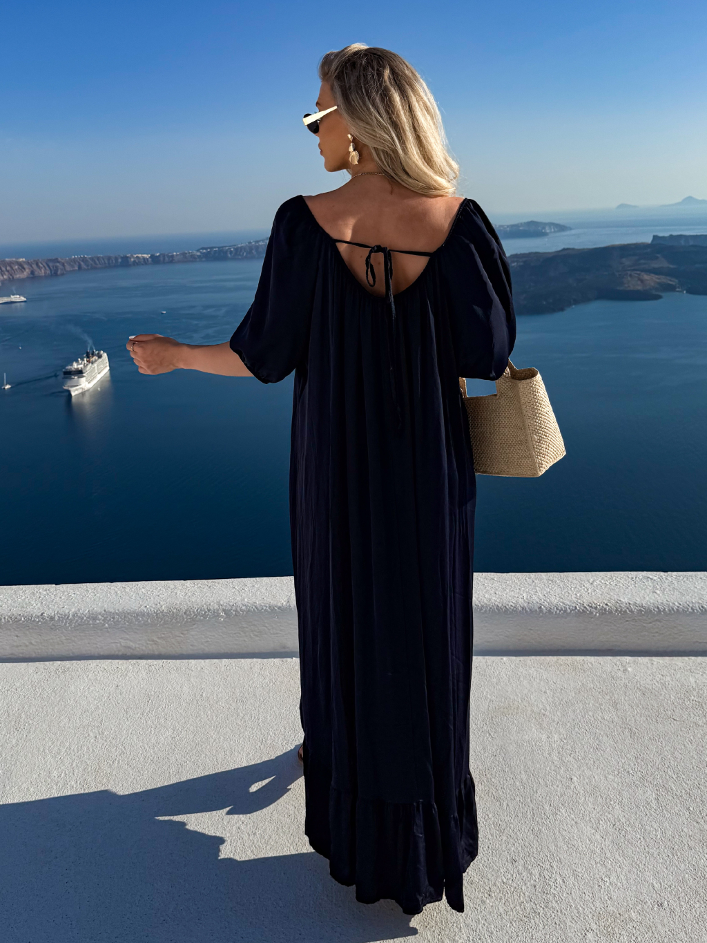 Tmavě modré oversize siroké šaty CICERO s krátkým rukávem