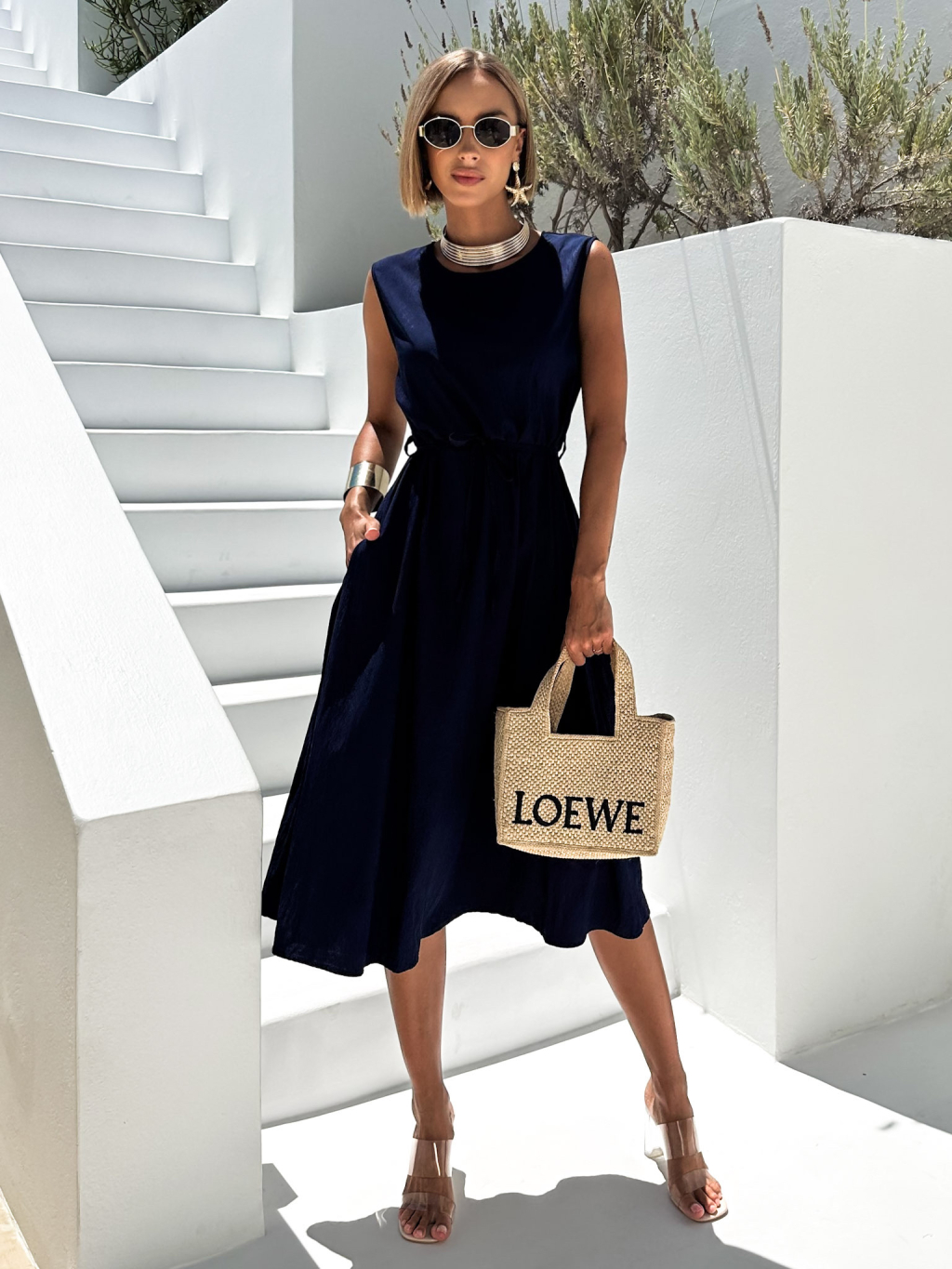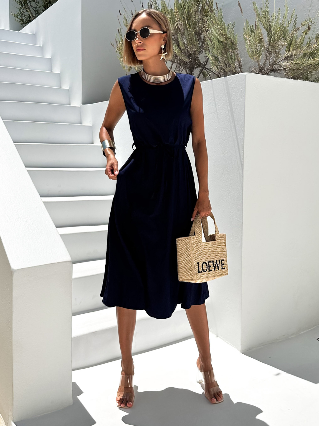 Tmavě modré vzdušné šaty TIMEA s kapsami
