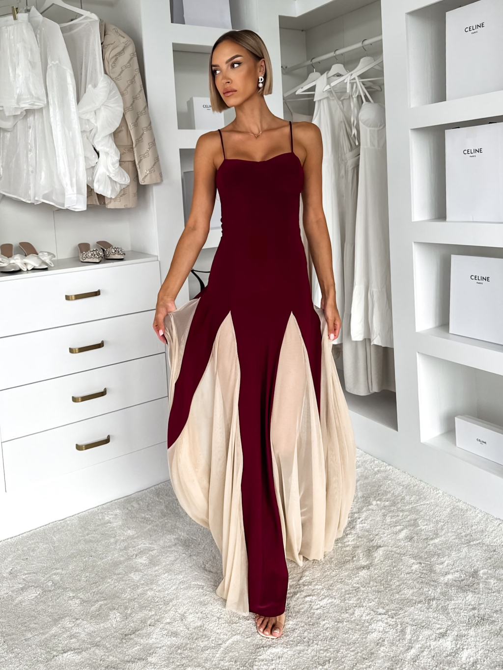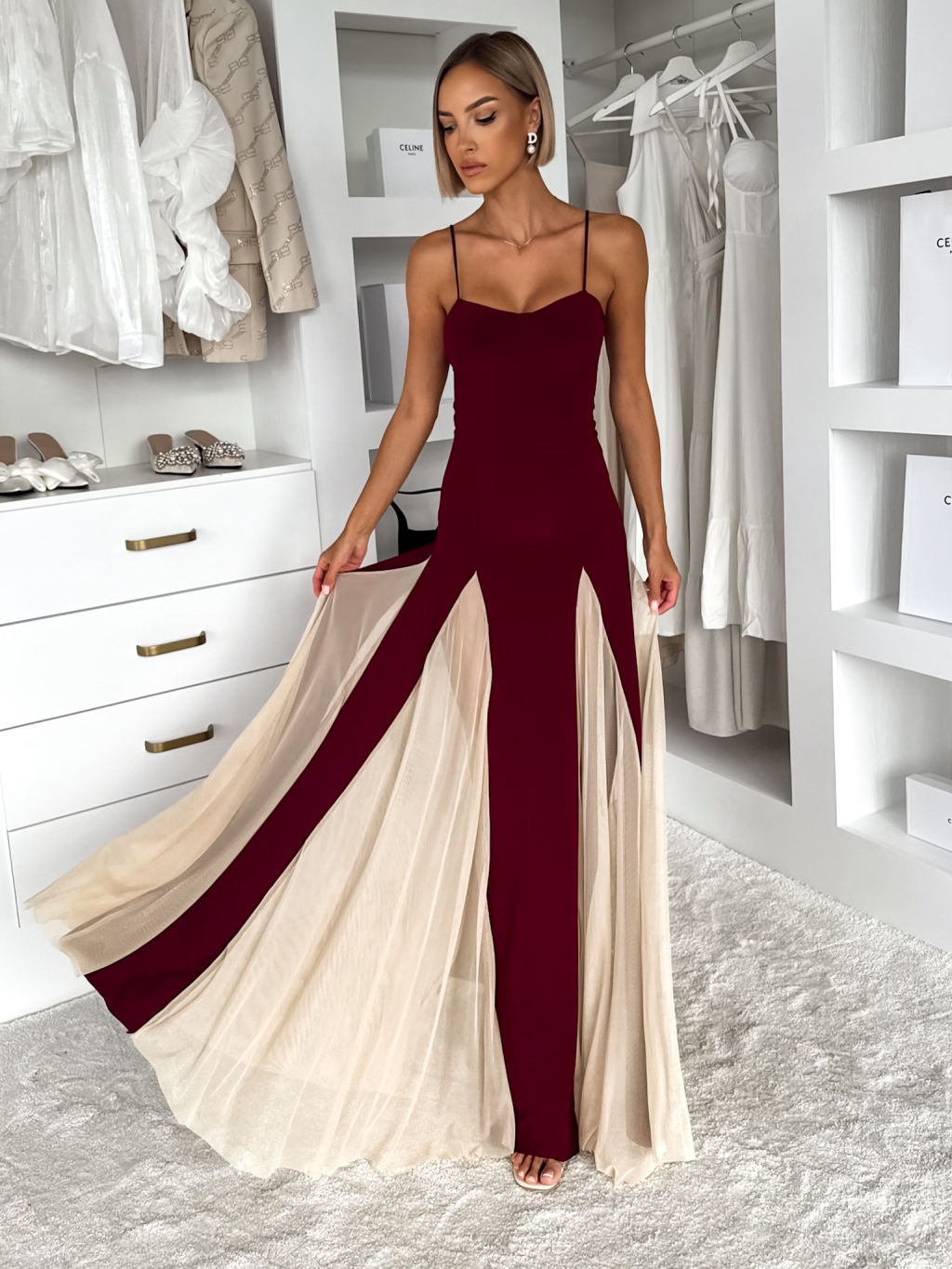 Vínové maxi dlouhé šaty DRELVIK na ramínka