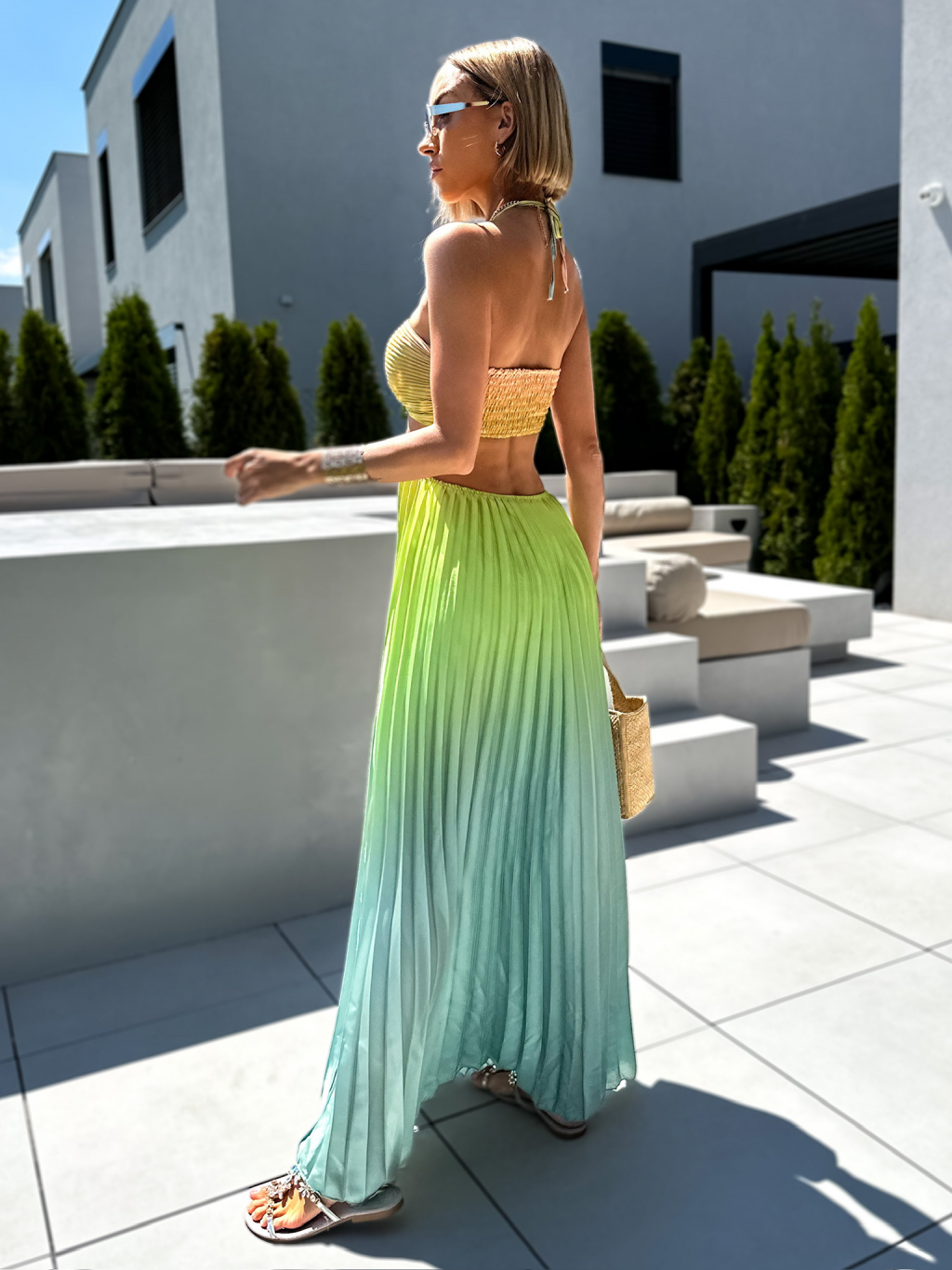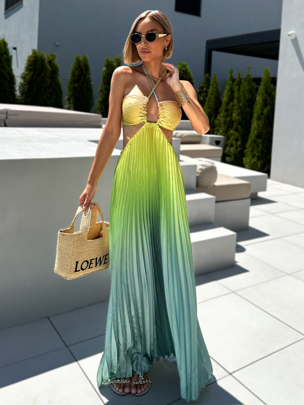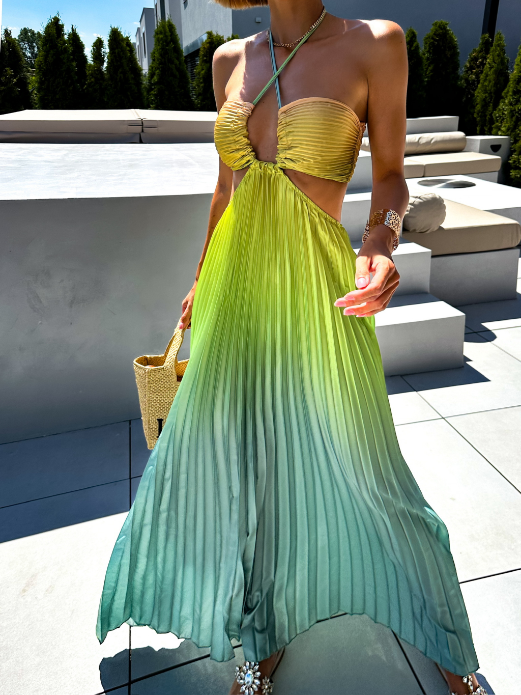Zelené dlouhé plisované šaty ANELIS