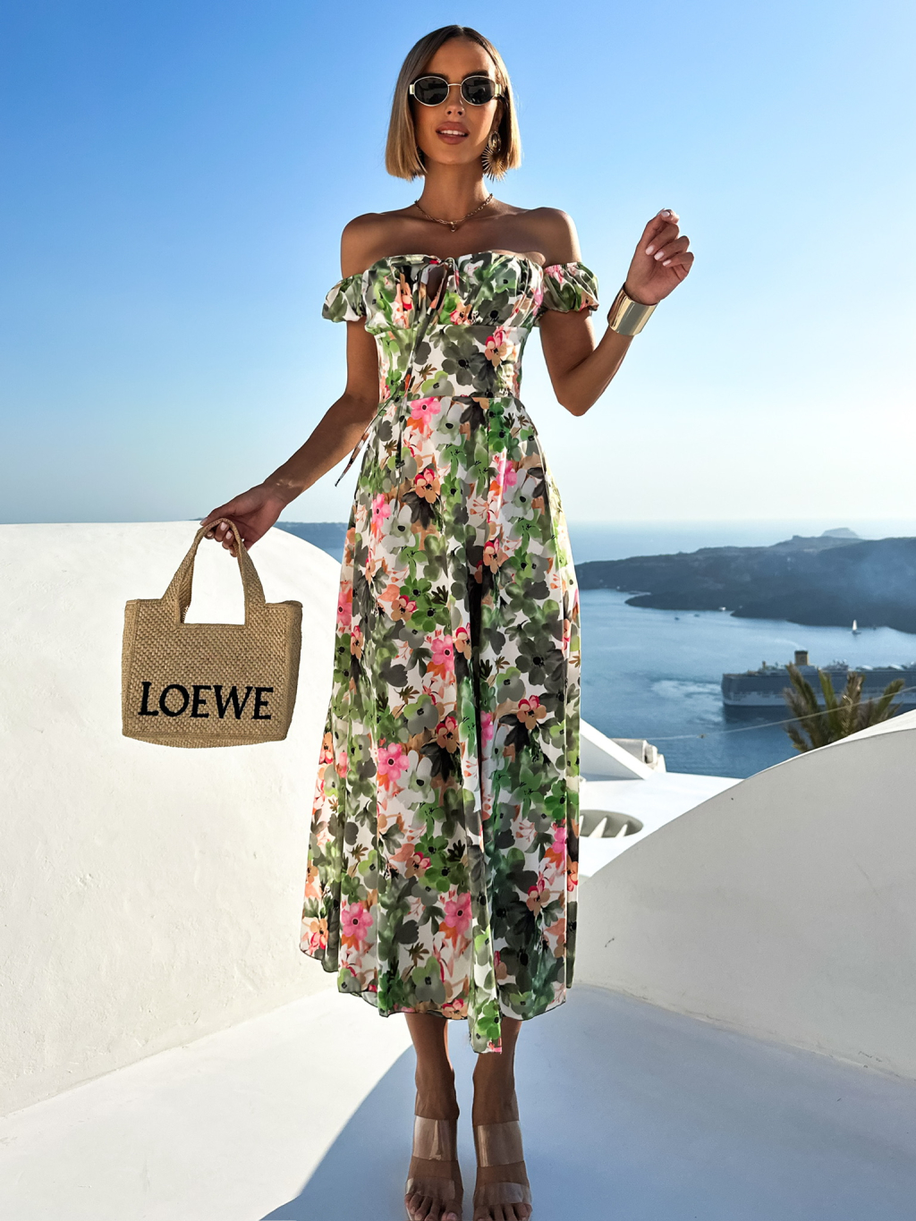 Zelené květinové vypasované šaty TERESIE