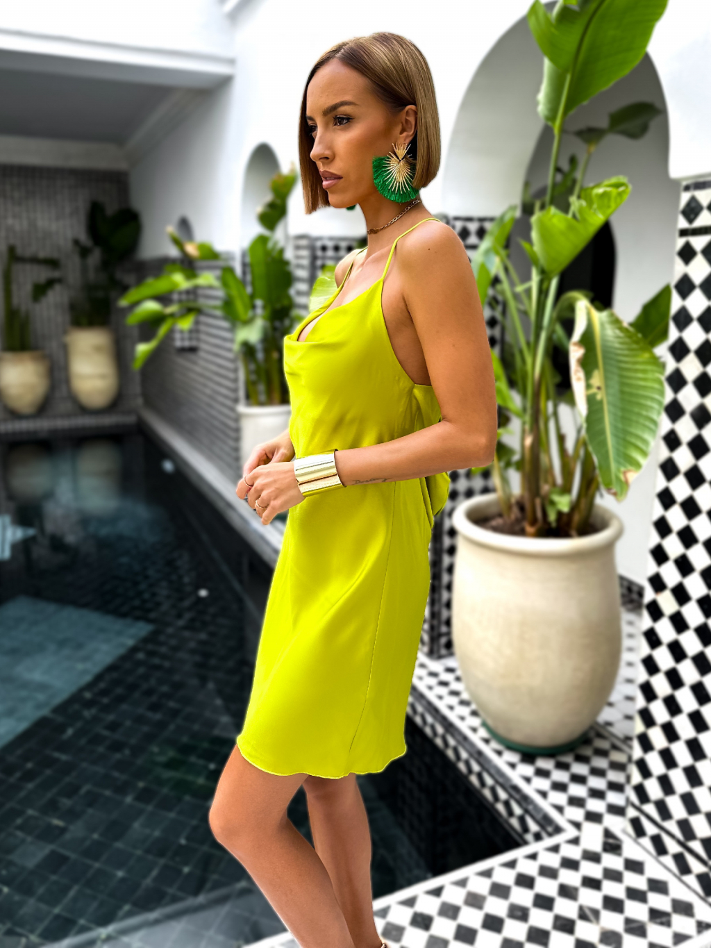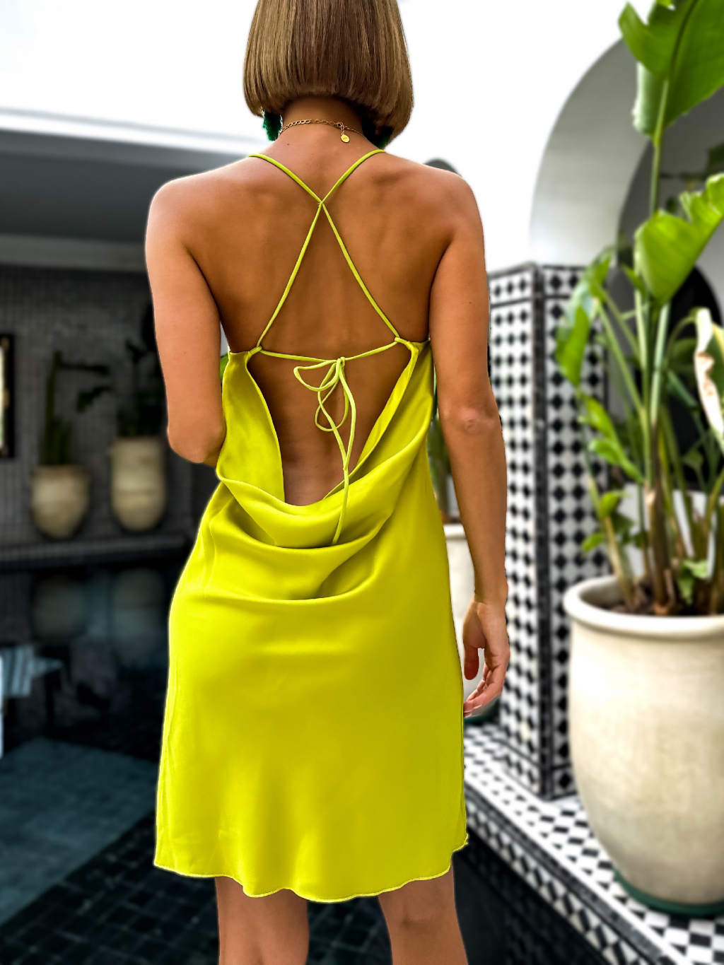 Olivové lesklé šaty CHICKET s vázáním na zádech